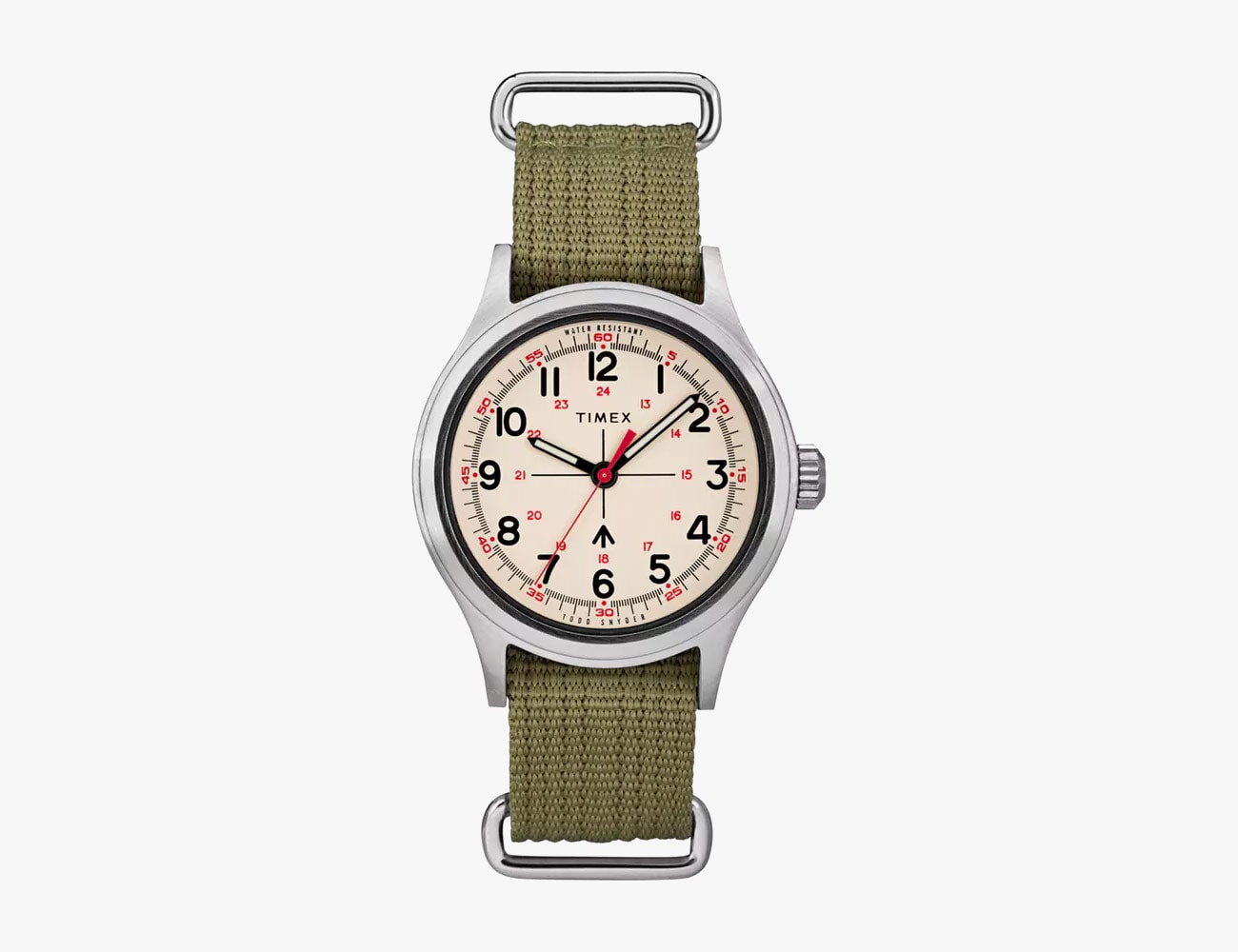 Based on a Timex design from the 1970s and updated with modern case proportions, a hardened mineral glass crystal and a quartz movement, the 40mm Timex X Todd Snyder Military watch is perfect for the field. And with its nylon slip-through strap and its 24-hour dial, you wouldn’t be remiss for mistaking it for an issued military watch.