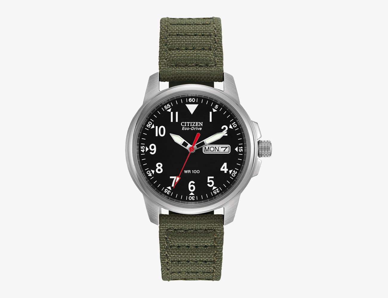The Chandler is powered by Citizen’s Eco-Drive technology, which charges via ambient light and never requires a battery or a service. Pair this with a day-date function, luminous sword hands, knurled crown, black dial and woven green fabric strap, and what you’ve got is a true field watch that doesn’t require any babying.