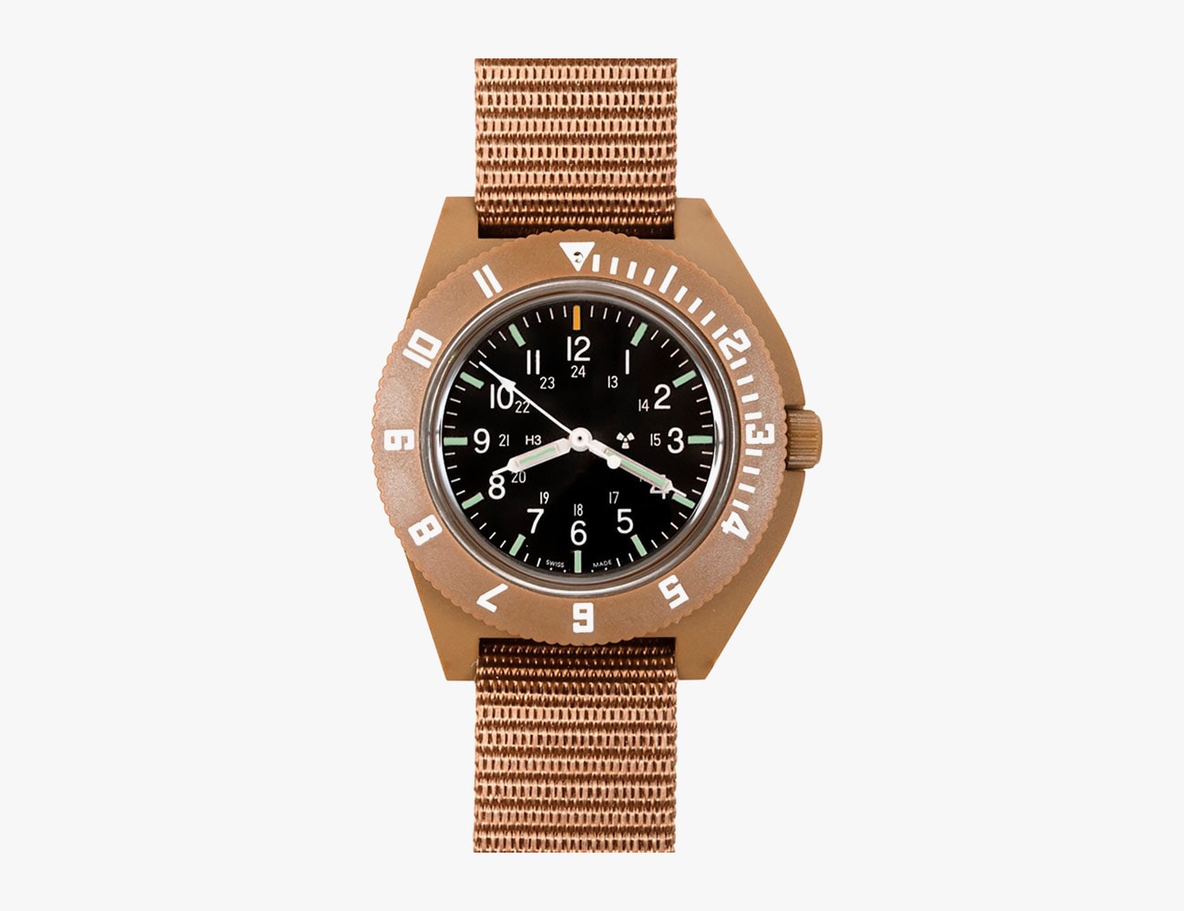 Developed at the request of Kelley Air Force Base for use by pilots and paratroopers, the Navigator is a tough-as-nails military watch. Featuring an asymmetric case, 12-hour bezel, quartz movement and tritium tubes for illumination in low-light conditions, this mil-spec timepiece arrives ready for anything.
