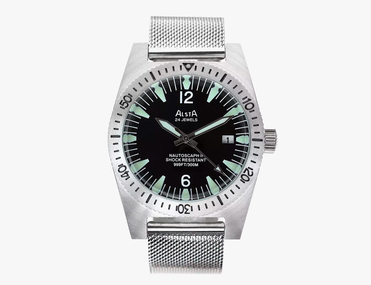 While perhaps most famous as the watch Richard Dreyfuss wore in “Jaws,” the Alsta Nautoscaph stands on its own as a robust skin diver, perfect for the water regardless of whether or not a shark attack is imminent. With an automatic Seiko NH35 movement and a case that’s waterproof down to 300m, the Nautoscaph II is pure 1960s looks with a 2018 feature set.