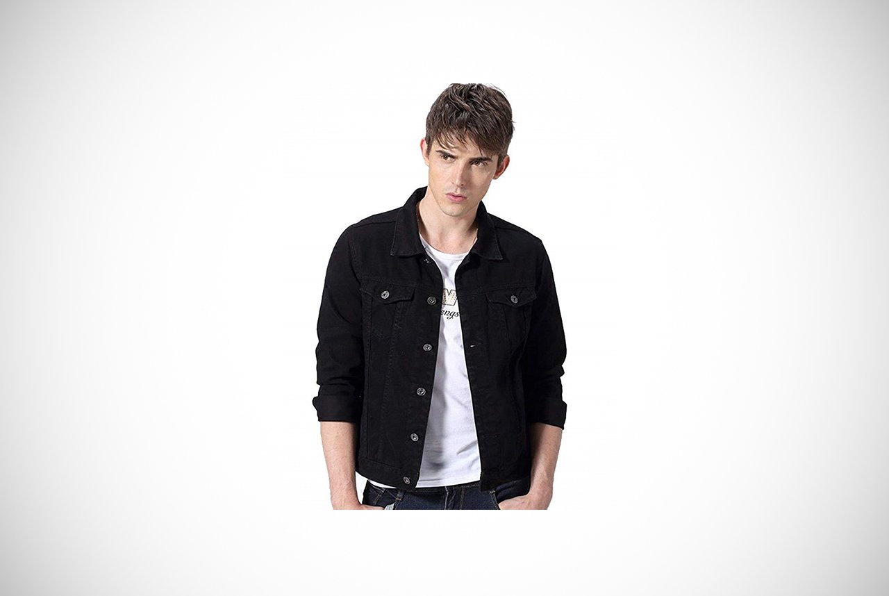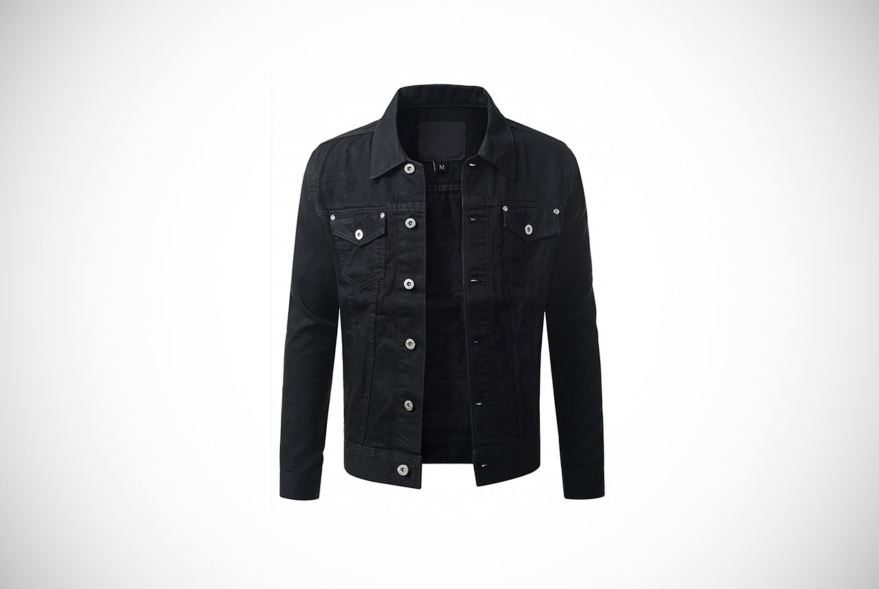 For a classic style denim jacket offered at a great price, this offering from Idopy hits the mark. The timeless trucker jacket in true black with dull silver buttons is casual but edgy.