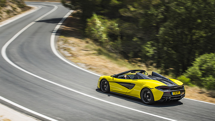 It gains only 101 pounds, bringing it to 2,895. One assumes that the real-world difference is negligible. To find out, we flew to Barcelona, enjoying a full day scuttling over gloriously curvy roads in an otherwise remarkably unpopulated part of the world. I recently spent a week with the regular 570S, so my ass was as calibrated as one could hope. Would there be any failings of the Spider over the coupe?