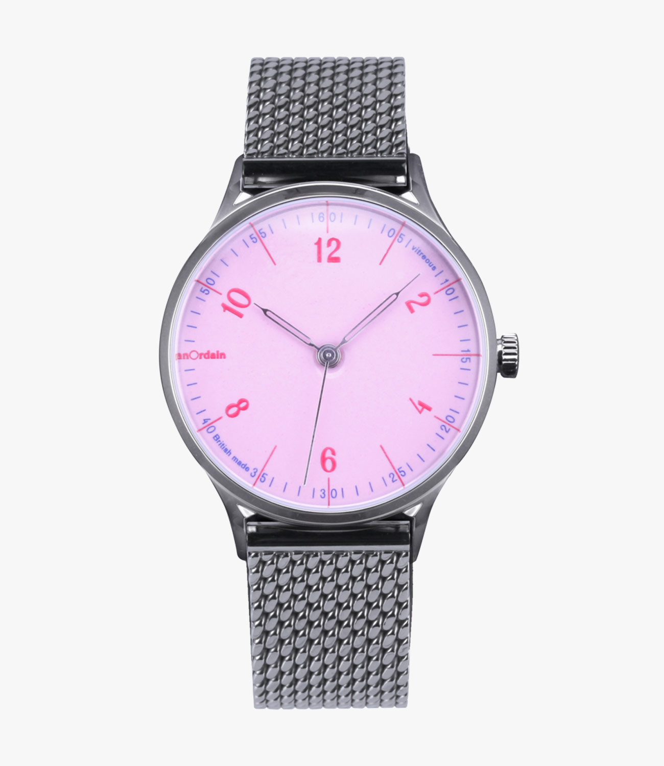 This Scottish brand makes beautiful enamel dials (which are notoriously hard to manufacture) at a relatively affordable price. The pink is the most stunning of its six colors, a statement piece that matches a summer sunset.