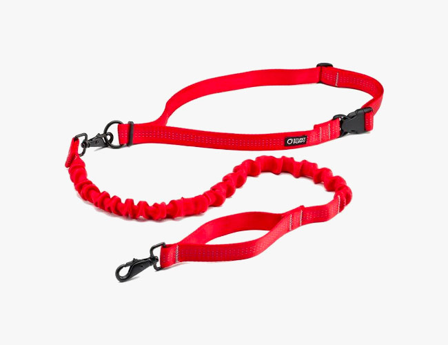Free your hands during runs with this self-adjusting leash that secures to the waist like a belt.