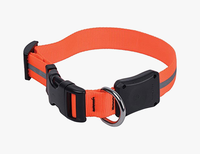 Your dog doesn’t need a headlamp to see in the dark, but it helps if you can see him. This collar is equipped with a red LED that emits light in solid and flashing modes.