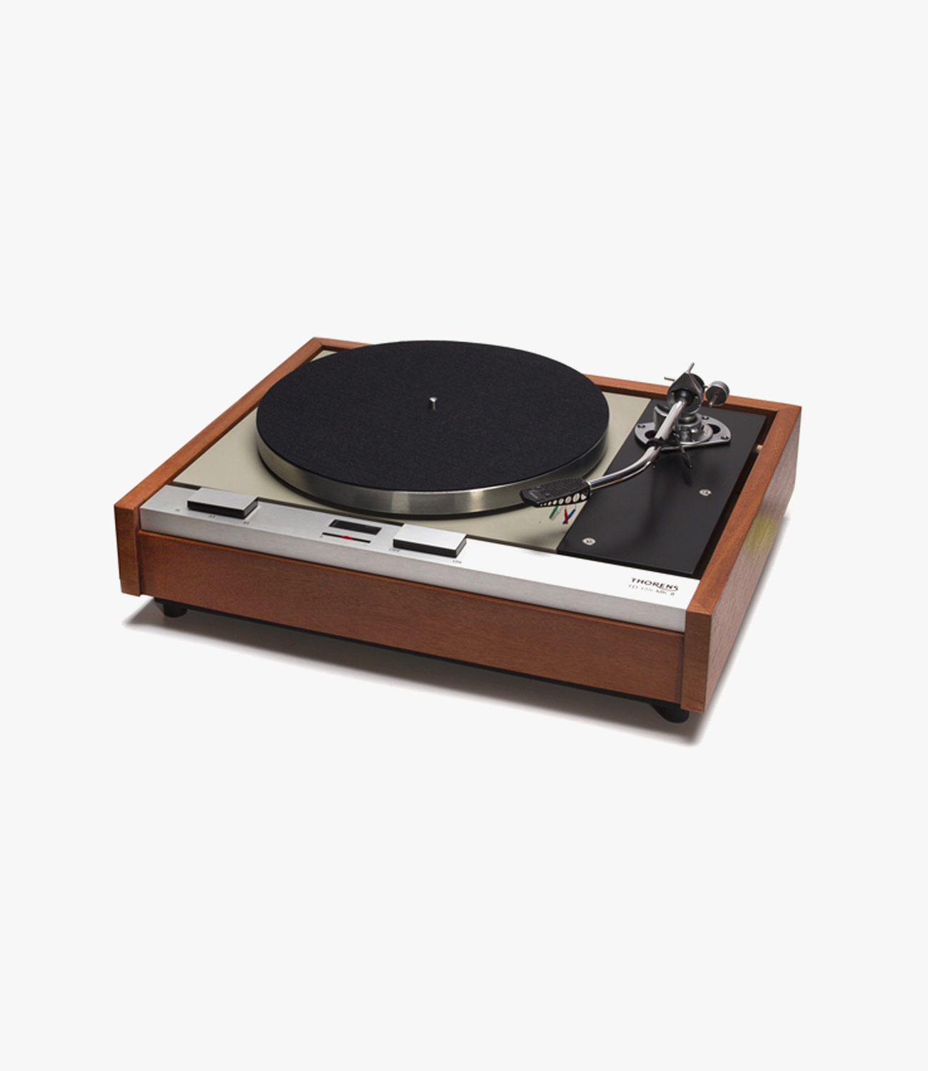 When the Thorens flagship belt-driven turntable was introduced in 1968 (the MK II in 1972), it represented both an aesthetic and technical shift for the Swiss manufacturer, who was known for its massive idler drive turntables. Belt-driven turntables with a sub-chassis were less expensive to manufacture and service, and the design allowed Thorens to isolate the motor and sub-chassis from the turntable’s plinth resulting in better sound quality; the downside was that it needed a sturdier rack. Thorens turntables work with a multitude of tonearms; including Rega, SME, Grace, Ortofon, and Jelco. Turntable restoration companies like Vinyl Nirvana and Artisan Fidelity have offered beautifully restored versions for years but have seen the market for the older tables change dramatically in recent years; vinyl’s resurgence has made them scarcer and more expensive.