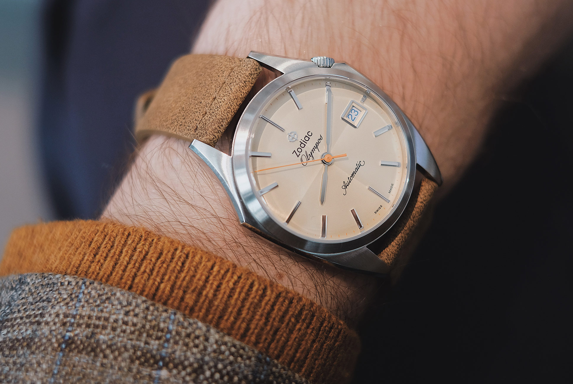Why it matters: One of the show’s most underrated releases, the Olympos is a reissue of a funky dress watch Zodiac made during the ’60s. The brand did not stray far from the original, keeping the case size relatively small at 37mm. It also packs an automatic movement into its sleek case and comes with a trio of beautiful brushed metallic dials. If you want, you can spend an extra $200 for the limited edition, which features a “mystery dial” giving off the appearance of an hour hand floating in mid-air.