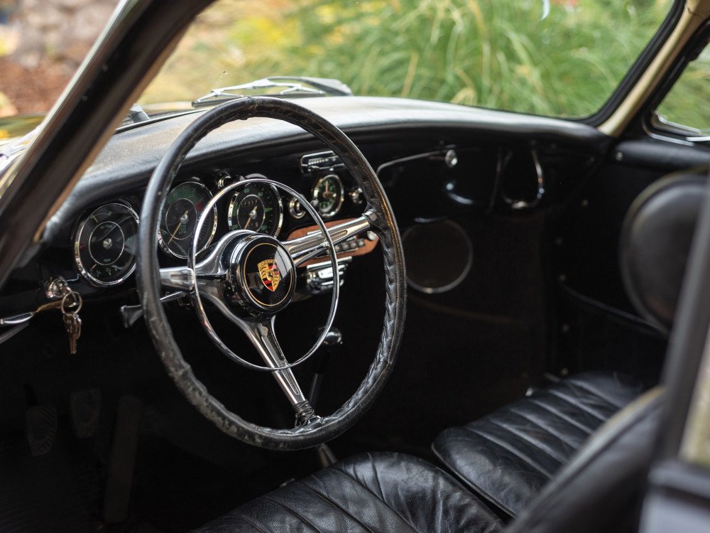 Fast forward to today and you’re now looking at this bad boy, which came straight out of Porsche’s factory in 1963. It comes with an unrestored sunroof, Becker radio with speakers, and black leather seats. Plenty of things to gush about here, like the Leitz luggage rack and deluxe horn ring. There’s also a tinted windshield and Rudge knock-off wheels. A thing of rarity in vintage car circles.