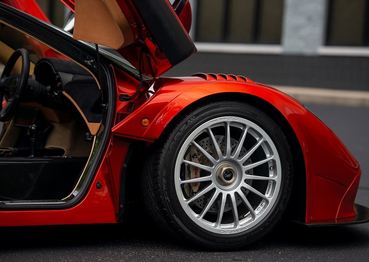 The 1998 McLaren F1 ‘LM-Specification’ shown here is one of two examples upgraded by the company’s Special Operations with an LM-spec engine (680-hp). The vehicle retains its road-spec interior with numerous upgrades, including satellite navigation, Alcantara livery, and more, while the exterior is finished in a brilliant orange metallic that perfectly suits the car’s stunning design.