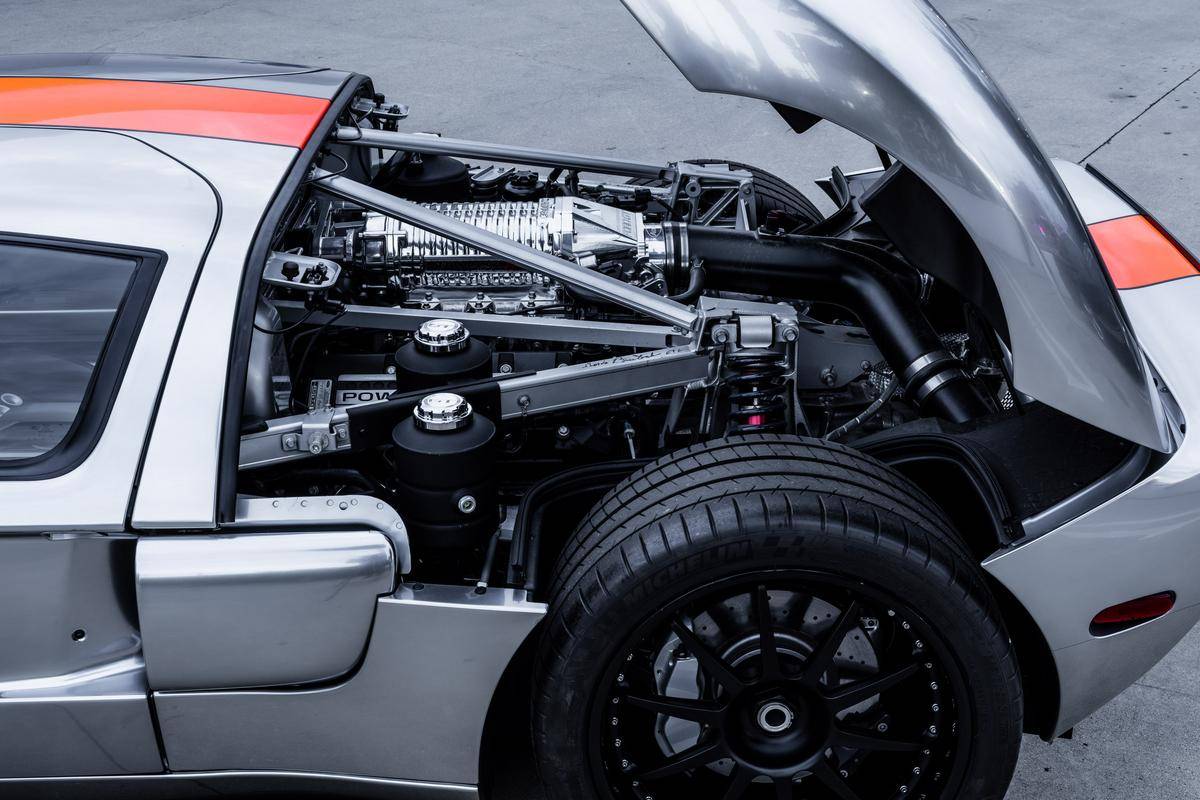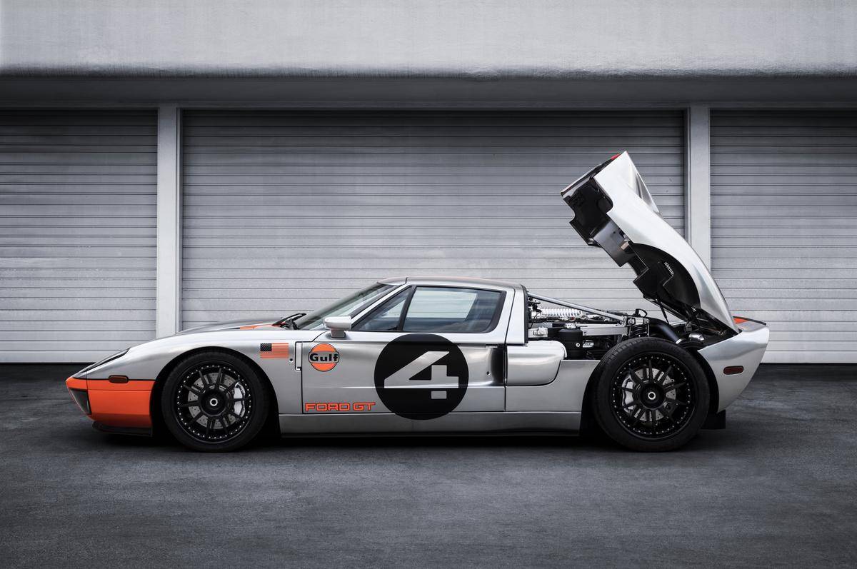 In all, the Ford GT Merkury 4 is a breathtaking vintage homage. Especially since chief Pardo himself supervised the touches and finishes. Other upgrades include a GTG “Vintage” bumper delete kit, which relocates the exhaust between the tail lamp like an original Mark II. And a ceramic-coated Ford racing exhaust, a nice detail on top of an already-packed job. The HRE center lock rims, custom “Ford GT” billet fuel door, billet clamshell center, and side clamshell vents are cherries. You’ll find twin sill badges to commemorate the build.