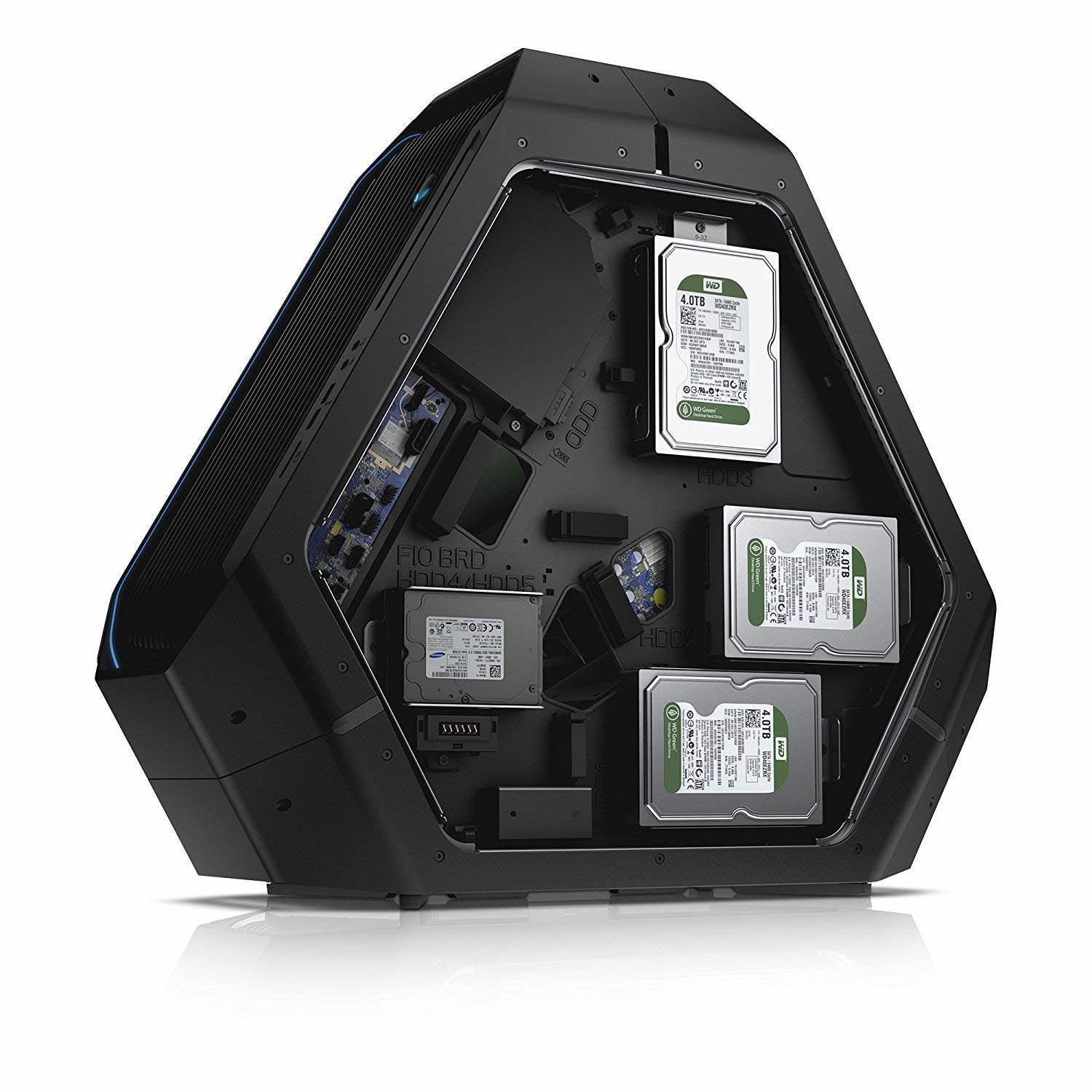 Alienware is planning to invade your homes with the 2018 Area 51 R2 gaming desktop computer. An angular monolith lined with sleek LEDs that provide a futuristic vibe to its enclosure. Don’t let the minimalist triangular form factor fool you—this imposing 22.4 x 25.16 x 10.74-inch object weighs in at a hefty 68.3 pounds. Thankfully, the integrated handles and unique shape make it easier to move around.