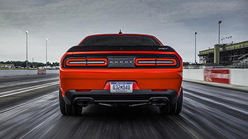 We comply, our finger lifting off the second paddle, and our foot rolling hard into the right pedal. In an instant, the engine roars to life, and the weight shifts to the rear wheels as they bite into the sticky pavement. As the Demon pulls our skeleton and the rest of our organs forward, our eyes and stomach seem to float in place for a moment. Eventually, they catch up, and we notice the whine of the 2.7-liter-per-rev supercharger, before the automatic transmission makes its first quick but jarring shift. Third gear arrives in another instant, and the car revs and shifts again with our right foot planted on the floor. We’re still headed dead straight, we realize with relief as the eighth-mile marker approaches, the car shifting into fifth gear. We’re off the gas, and we coast down the drag strip to our exit, chuckling to ourselves.