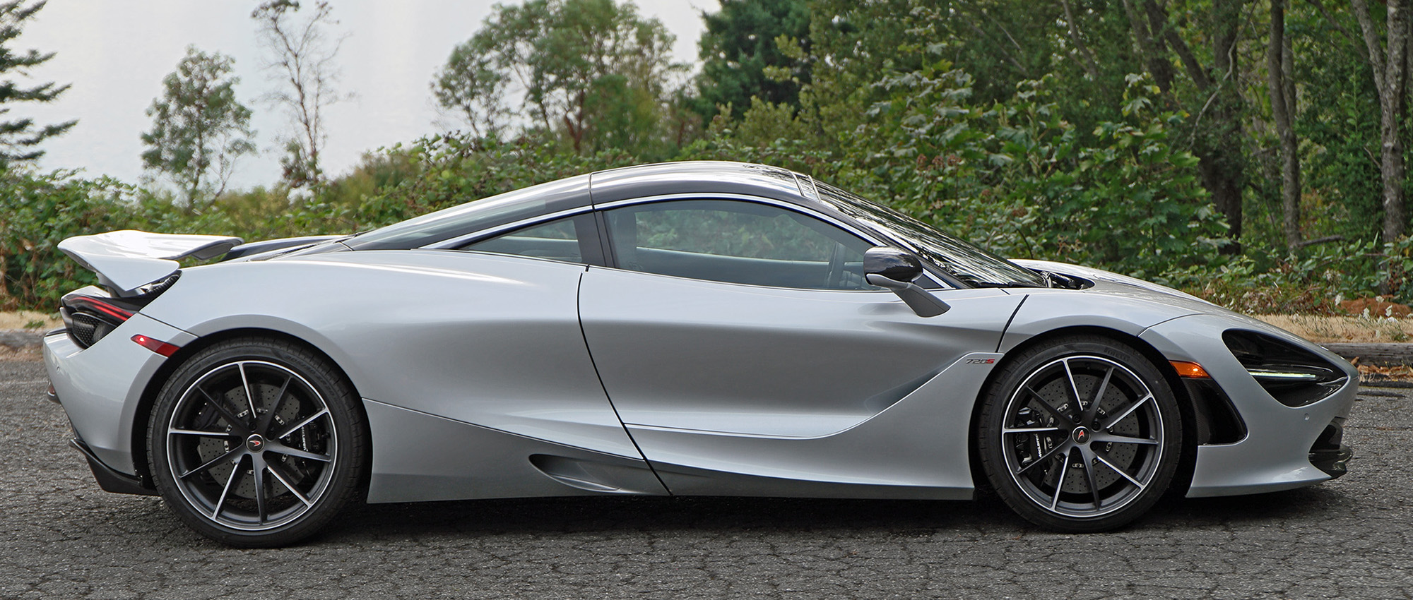 We tested two different 720S models. The silver car pictured here boasts a number of options, including a Luxury package that adds exterior trim in Dark Palladium, engine bay ambient lighting, and premium leather for the heated and power-operated seats. Our test car was also fitted with a front splitter, air intakes, and door mirrors in carbon fiber, and a sports exhaust system. Total price came to $342,135.