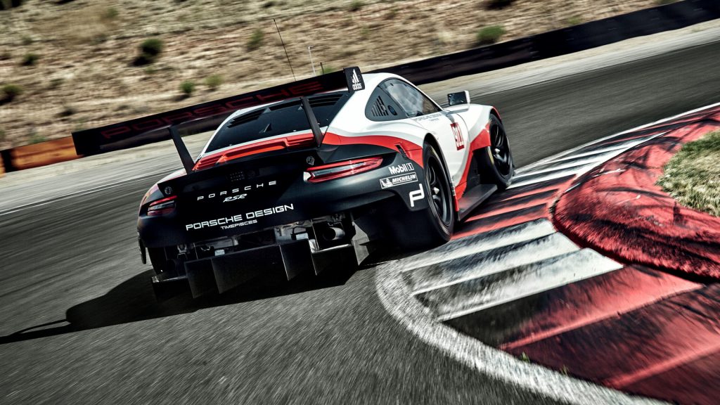 Repositioning the flat-six engine is considered an essential design element in ensuring the car remains competitive in its GTLM racing class. Apart from its more centralized weight distribution – effectively reducing tire wear at the rear wheels – the new engine placement also allows for the use of a massive rear diffuser and top-mounted rear wing, which significantly improves aerodynamic efficiency over rear-engined iterations.