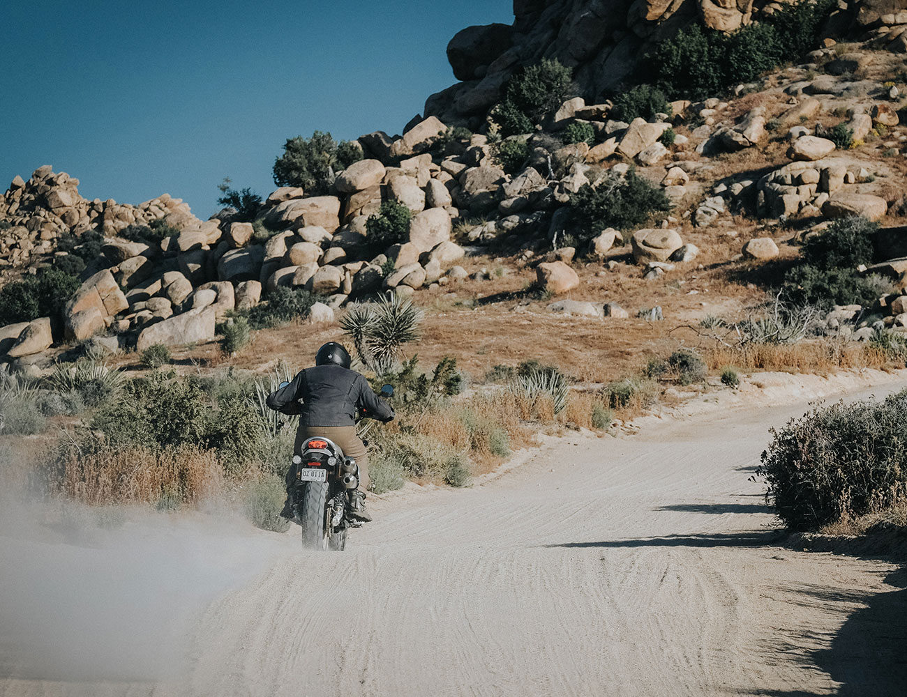 However, if the undulating tarmac and the rutted sand pits are where the Triumph pulled away from established ADVs, it showed its greatest weakness while attempting to keep up during a lane-splitting sojourn down the freeway. During my relative straight shot back from Pioneertown to LA, I was joined by two friends piloting a Triumph Tiger 800 and BMW R 1200 GS. The Scrambler 1200’s punchy powerplant held its own on a long stretch of highway, but only up to a certain speed; beyond that, the nakedness and retro-minimalist styling of the Scrambler stopped being cool and started exaggerating the bike’s vulnerability.