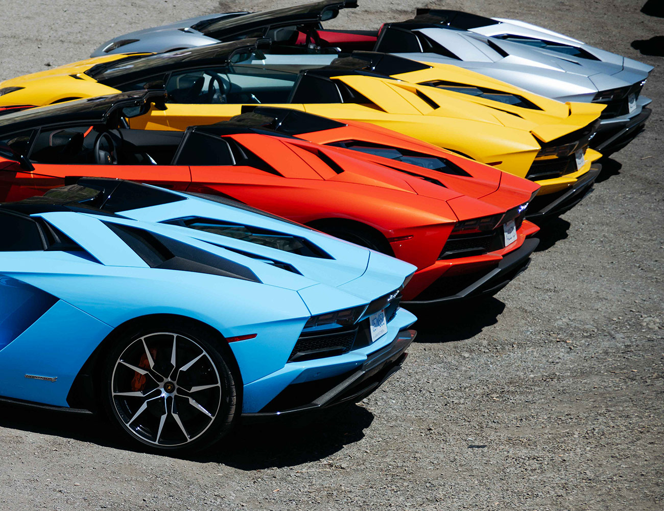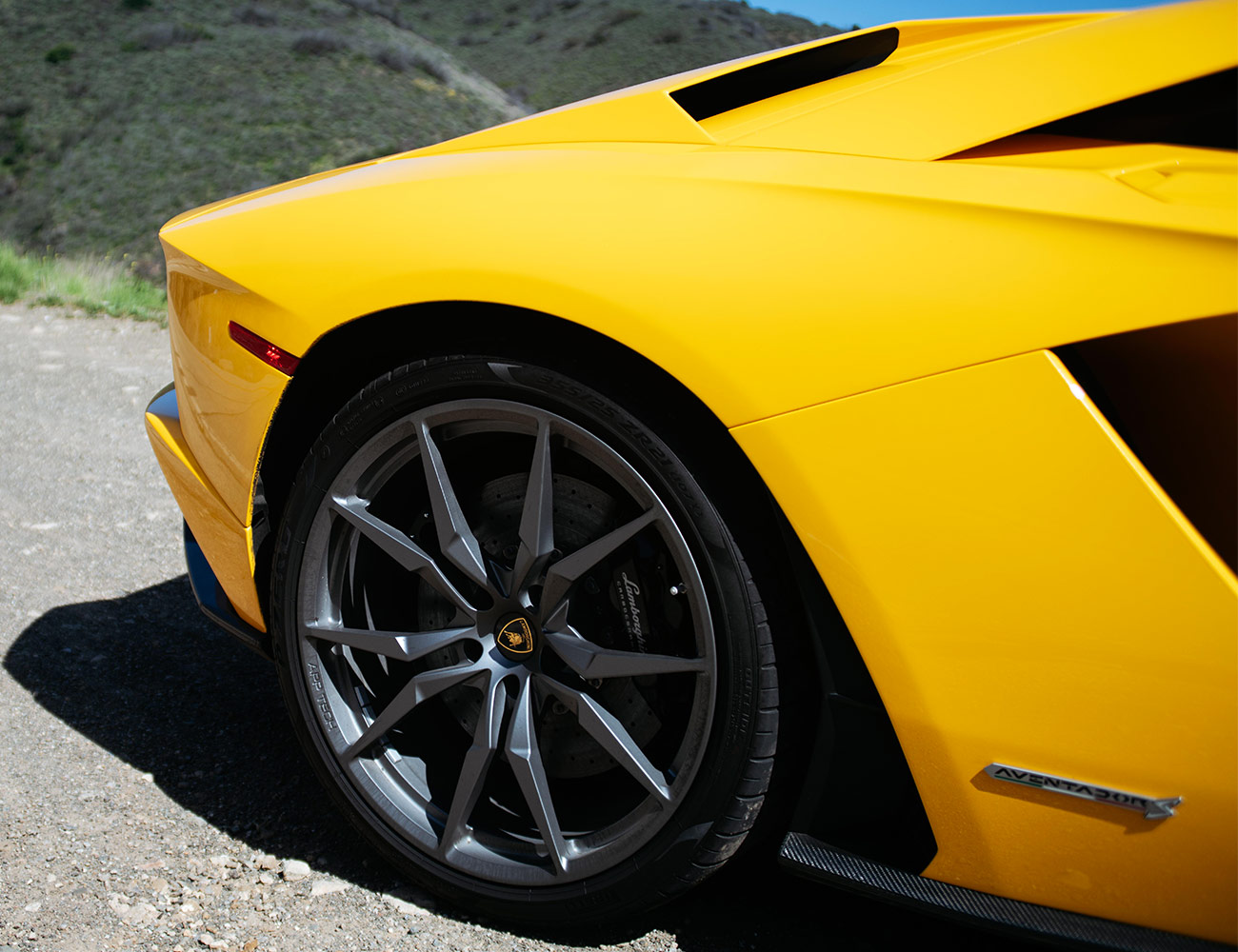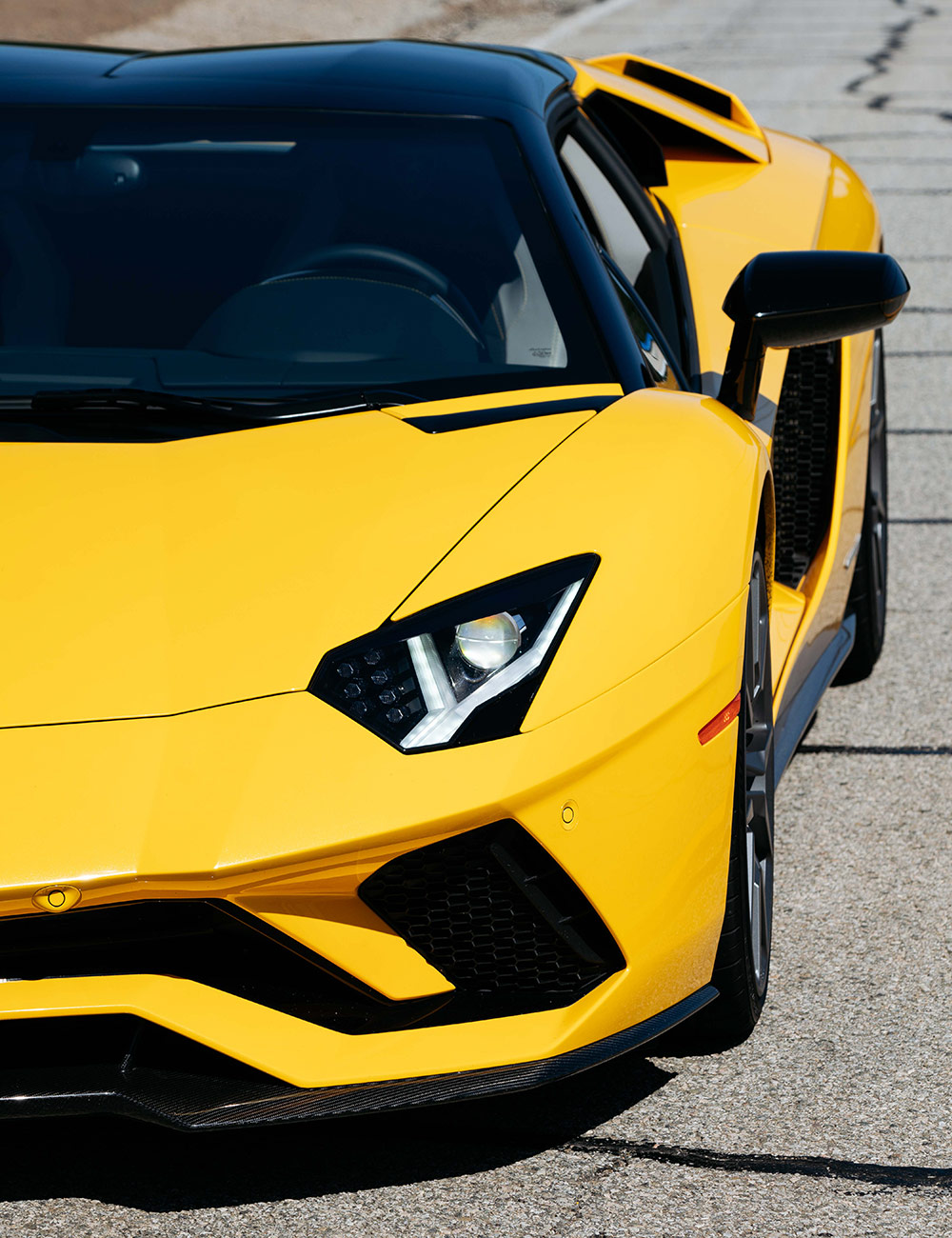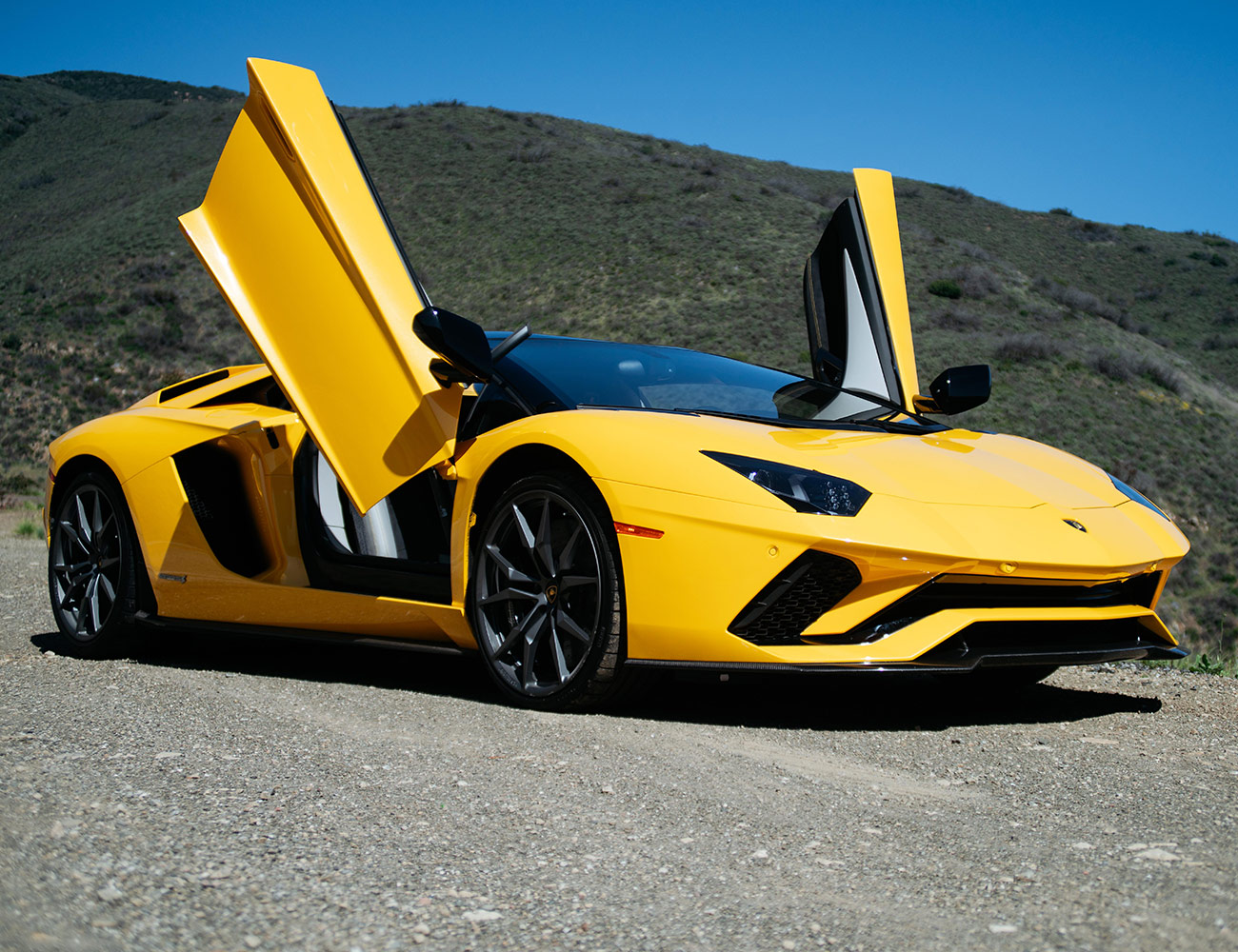 The doors aren’t the only thing that go up on the Aventador S Roadster. With the push of a switch you can raise the front end to give you an extra two inches of ground clearance for a total of seven inches overall.