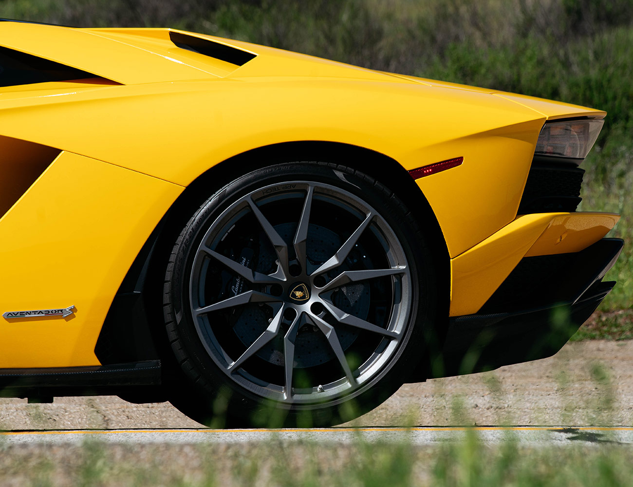 Not just a nod to the original Countach, the rear of the Aventador S Roadster is dominated by air-sucking pods that feed cold air to the mid-rear-mounted V12.