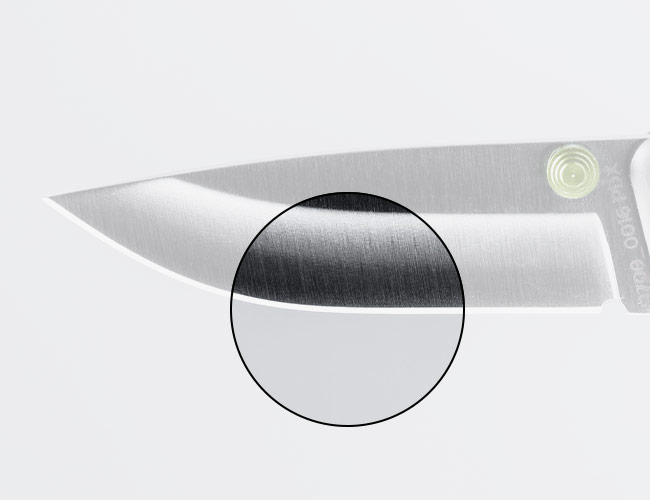 Swedge: Also known as a “false edge,” this is a portion of the knife’s spine that is unsharpened but has been ground to give the appearance that it is.