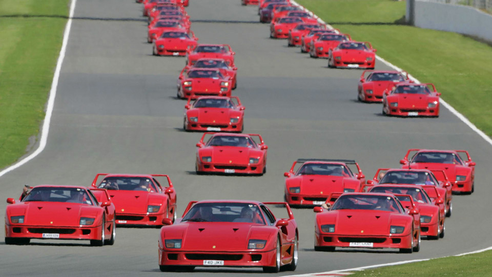 In honor of the F40 and to celebrate its 25th anniversary, the world’s largest gathering of F40s was held Sunday at the Silverstone race course in England. 62 F40s took part in the annual Silverstone Classic held every year to celebrate and race old sports cars.
