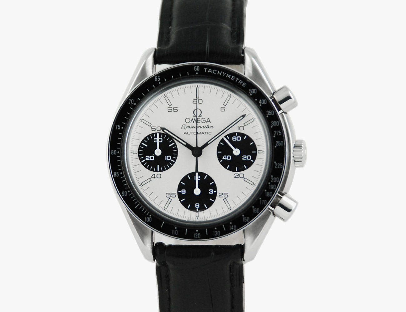 What we like: Billed as a smaller, more affordable alternative to the Professional, the Speedmaster Reduced was never likely to catch on with collectors. Still, it’s an excellent timepiece for its relatively low cost — especially considering it boasts the same handsome looks as the Professional in a smaller case size (39mm). This particular example is a Japan-only, limited edition made for Marui department stores and it’s one of the more desirable Reduced model thanks to its attractive panda dial design and the fact that fewer than 2,000 were made.