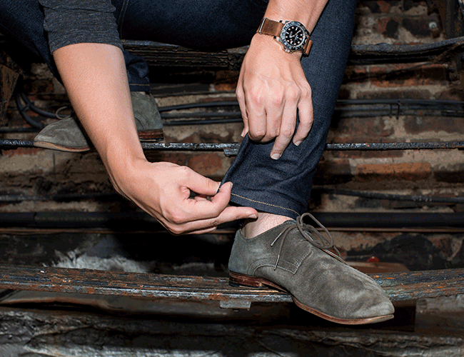 The Iron Worker is the perfect fold for long raw denim or heavyweight canvas pants. This fold looks great with boots and is best accompanied by a beard and a flannel.