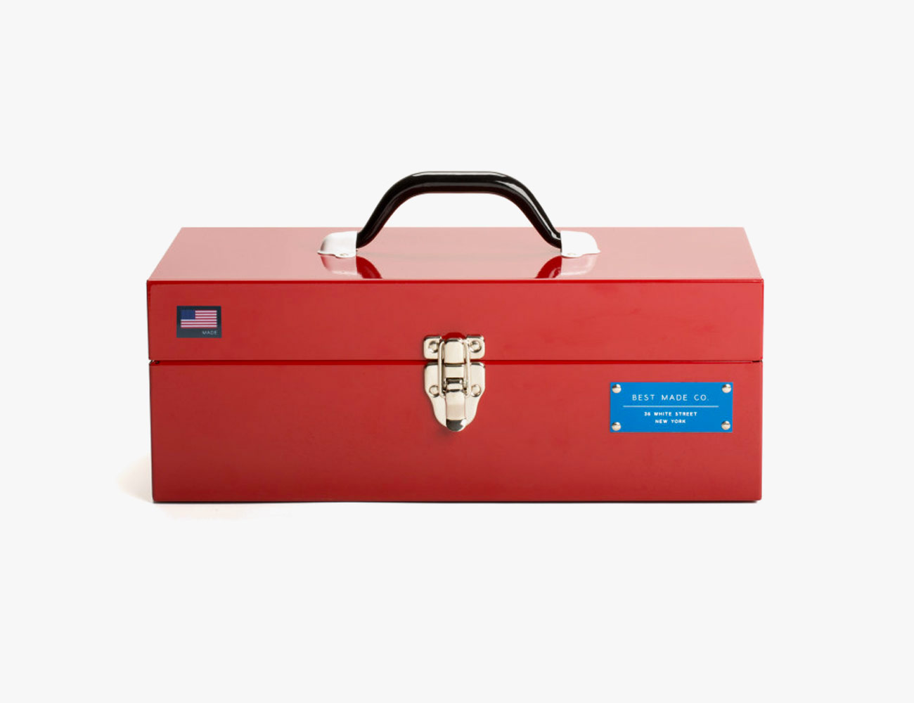 Best Made Co.’s toolbox is exactly what you’d expect it would be, and that’s fantastic. Made entirely by hand in America with American materials, this 22-gauge powder-coated steel toolbox is a simple 15-inch mini storage spot for heavier tools. Other than the box, the only trimmings are the spot-welded handle and single-latch lock, the classic Best Made stamp and a tiny American flag. And because it’s Best Made, it’s guaranteed for life.