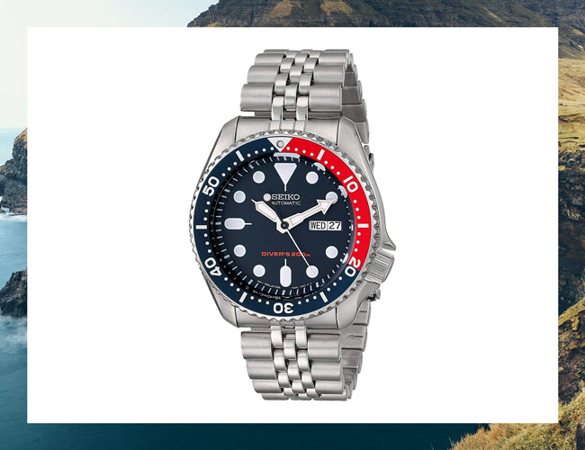 Looking for something that dad would want to wear by the poolside, beach, or lake? Hard to go wrong with this dive watch here. The 42mm case features an attractive blue bezel, dial, and prominently lumed hands and indices for easy legibility.