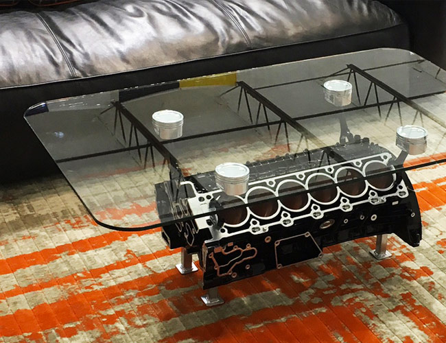 As far as upcycled car parts go, you can do a whole lot worse than a Mercedes V12. Sure, it doesn’t produce the operatic sound it used to, but the contrasting black and bare metal finish is somewhat elegant in its own right.
