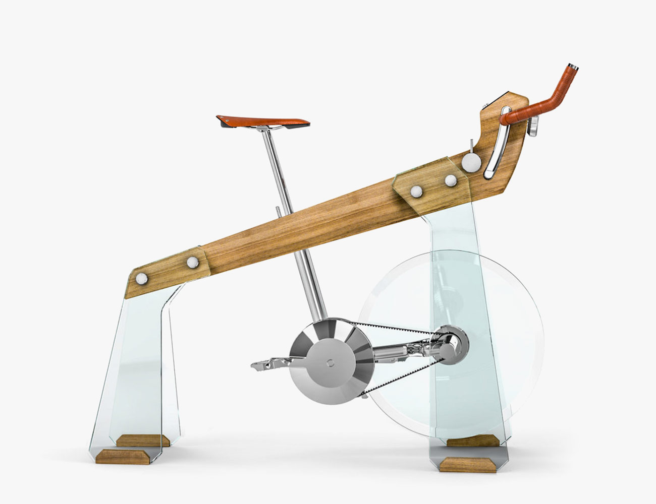 Eurobike is a good venue to encounter the unexpected, like this trainer by Elite that’s part modern art, with the idea being it’s pretty enough not to hide in a garage or crammed into a closet. It’s wood, glass and aluminum and pairs with Zwift and other training software.