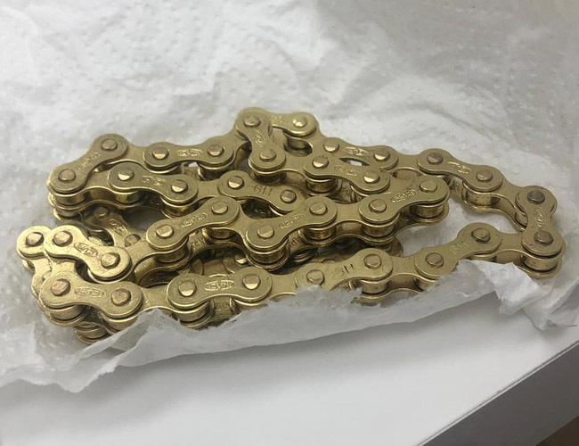 “That’s just full circle for me, being inspired by Pharrell as a kid and Nigo and all their crazy chains, I always wanted to have something the same. When I was a kid I use to make these big chains with Swarovski crystals that looked like P and Nigo’s chain so that’s where that’s coming from. I dreamed about this piece for a long time and I wanted it to really represent something I love, so we did a bike chain.”