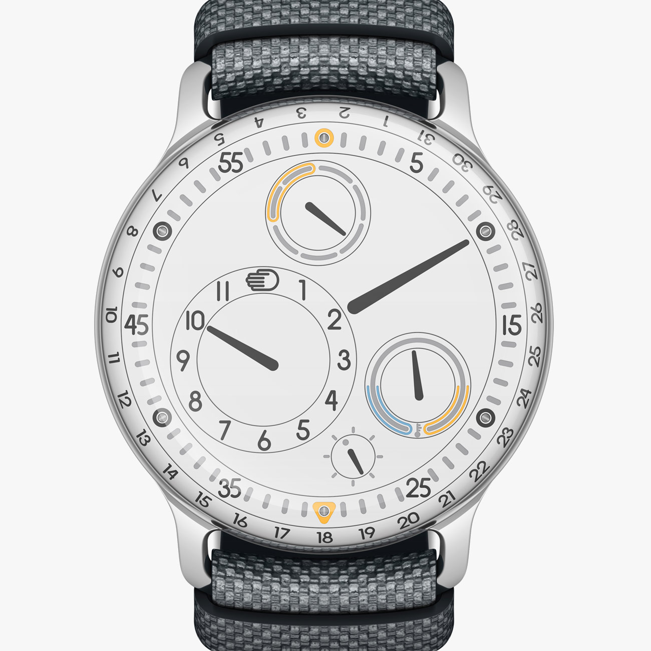 Ressence watches are so innovative that it’s easy to overlook that this new star of the horological stage speaks fluent Bauhaus. The patented ROCS 1.3 Orbital Convex System tells the time and date with rotating discs within a larger rotating dial. (Check out this video to see how it works).