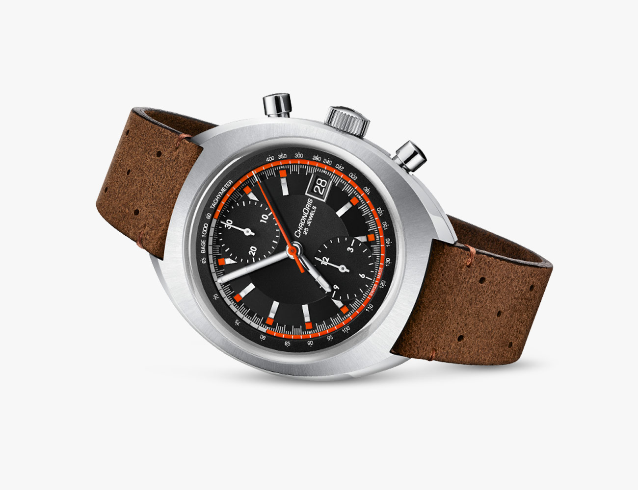 Most asymmetrical cases look, at first glance, like your typical round case. But look closer and you’ll see the crown-side of the case is ever-so-slightly wider than the other. The idea is to provide a little extra shrouding for the watch’s crown and stem (and pushers, if its a chronograph), much like the crown guard on a dive watch. One of the most recognizable watches of all time, the Omega Speedmaster, in fact, has an asymmetrical case, but other tool watches – the single-crown Universal Geneve Polerouter, the Benrus Type 1 and the CWC Chronograph to name a few – feature a similarly asymmetrical case design.