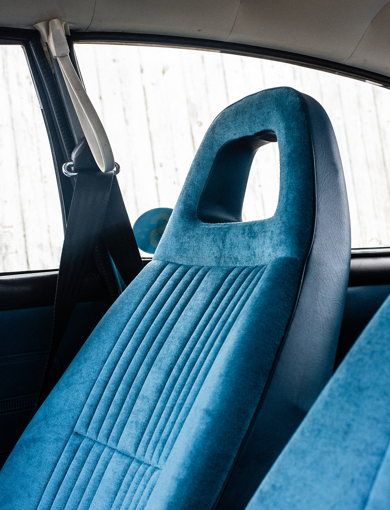 Of those hundreds of thousands of 96s, the one pictured here, which I drove, is one of the very last examples ever made. In 1980, the 96’s last year of production, Saab ended on a high-note, introducing a special model called “Jubileum,” which consisted of 300 limited-run models that were specified identically, but all to perfection. The mechanicals were no different compared to the regular 96 — its 68-horsepower V4 engine and four-speed manual remained — but the car received a brilliant powder blue paint job, special alloy wheels, special trim and upgraded blue seats, basically taken from the Saab 99.