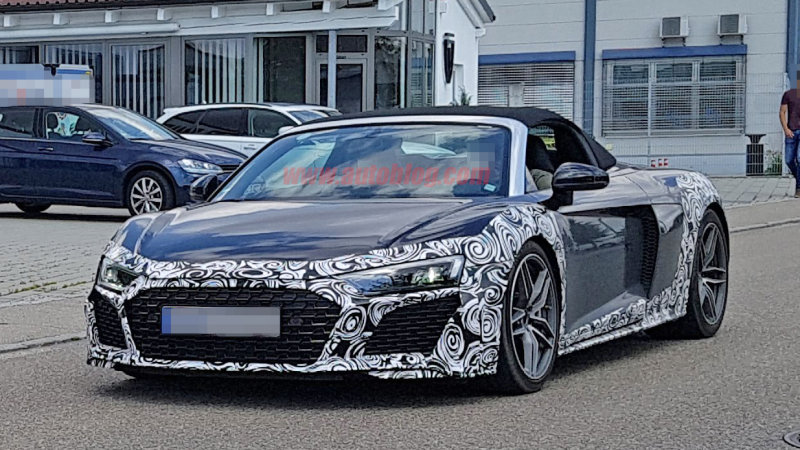 Recently, the updated Audi R8 appeared wearing little camouflage and reworked front and rear fascias. Now the Audi R8 Spyder convertible has emerged. It too is wearing minimal coverings and features similar visual updates to the coupe.