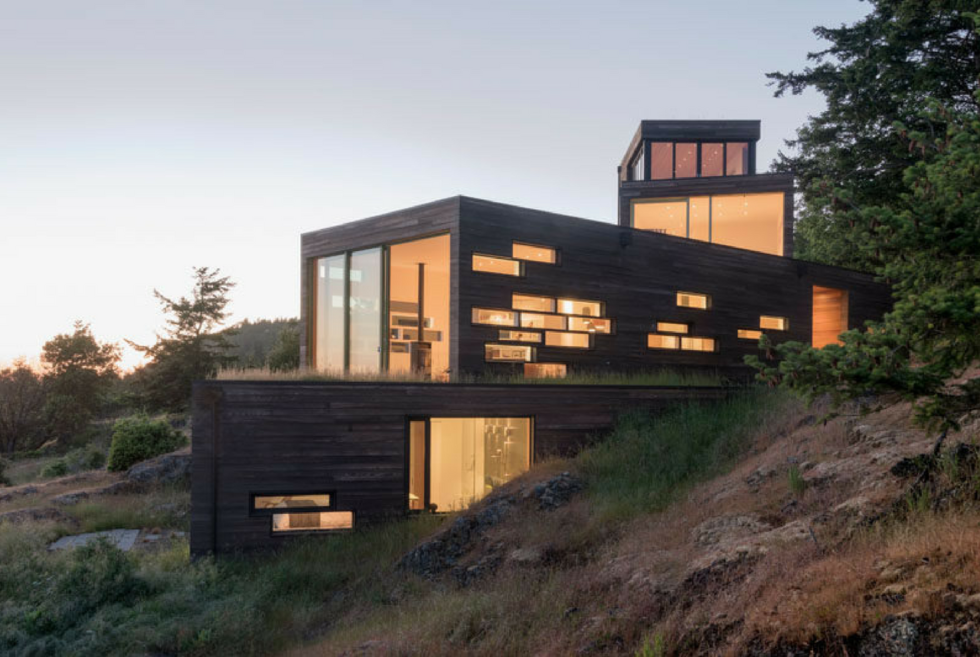 This property is situated in the beautiful Pacific Northwest. It entails some well-thought-out timber spaces positioned over a hillside. Specifically, sitting on the rocks of an island just off the Washington coast, going by the name of San Juan.