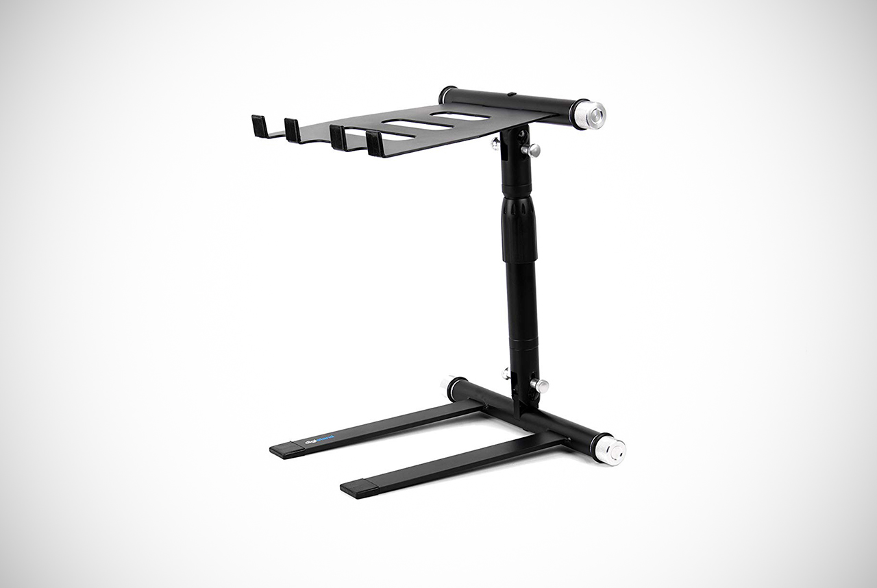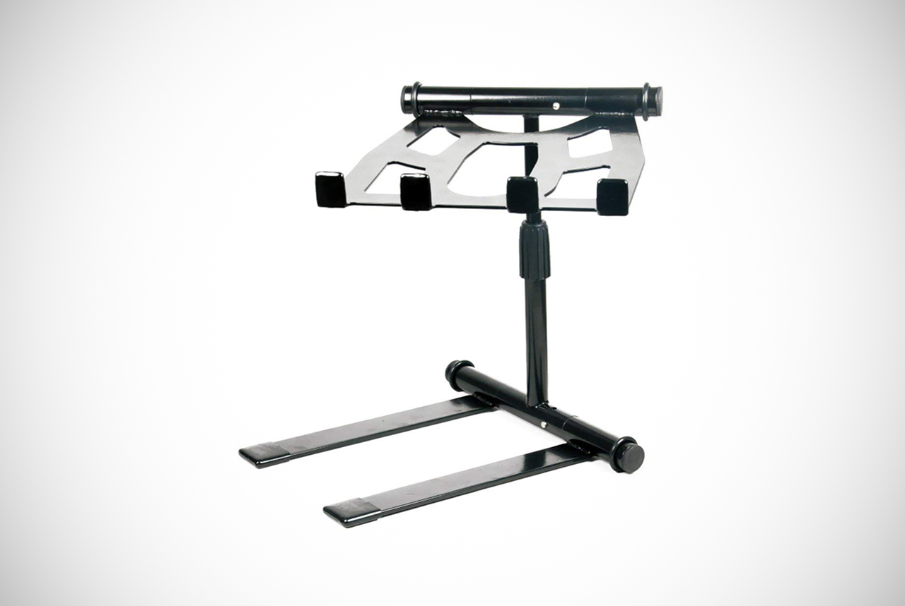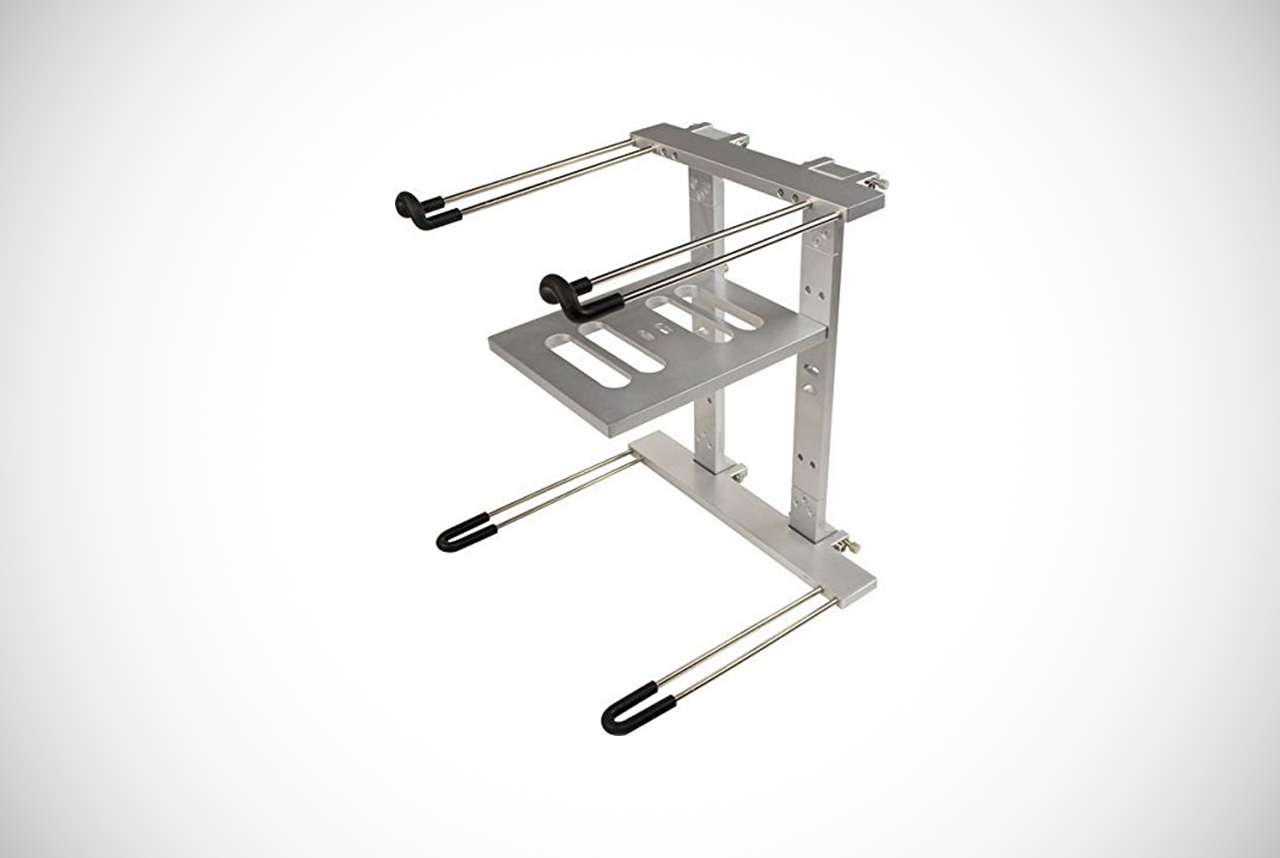 The Gearlux laptop stand is an option to consider for DJs, lighting engineers, and musicians. This laptop stand has the ability to hold laptops that are as wide as 19 inches. The Gearlux stand can also accommodate mixers, printers, controllers, CD players, etc.