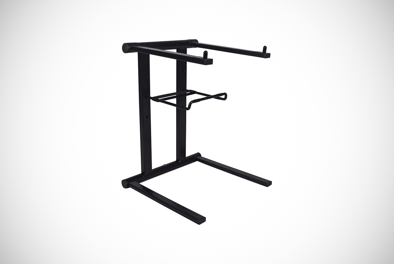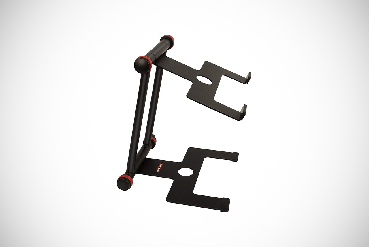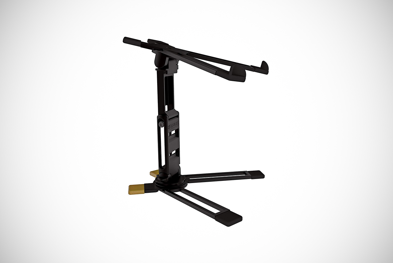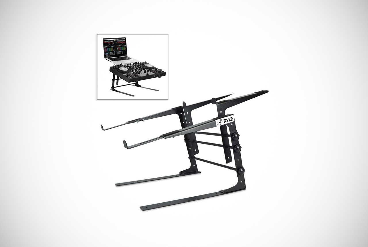 The Gearlux laptop stand is an option to consider for DJs, lighting engineers, and musicians. This laptop stand has the ability to hold laptops that are as wide as 19 inches. The Gearlux stand can also accommodate mixers, printers, controllers, CD players, etc.