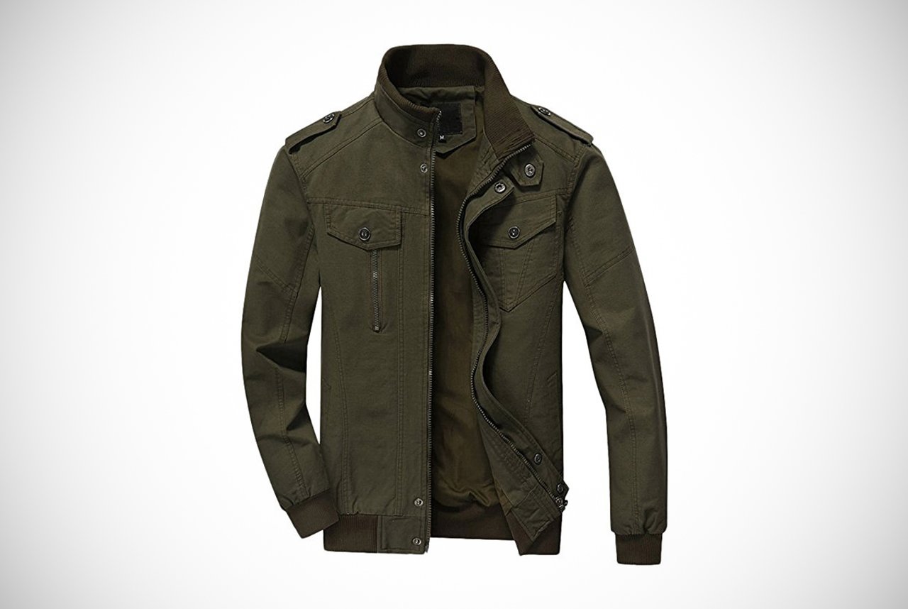 If you’re looking for an attractive bomber jacket for spring and fall seasons; this jacket is the best fit. It also comes in different colors like green, army, black and khaki.