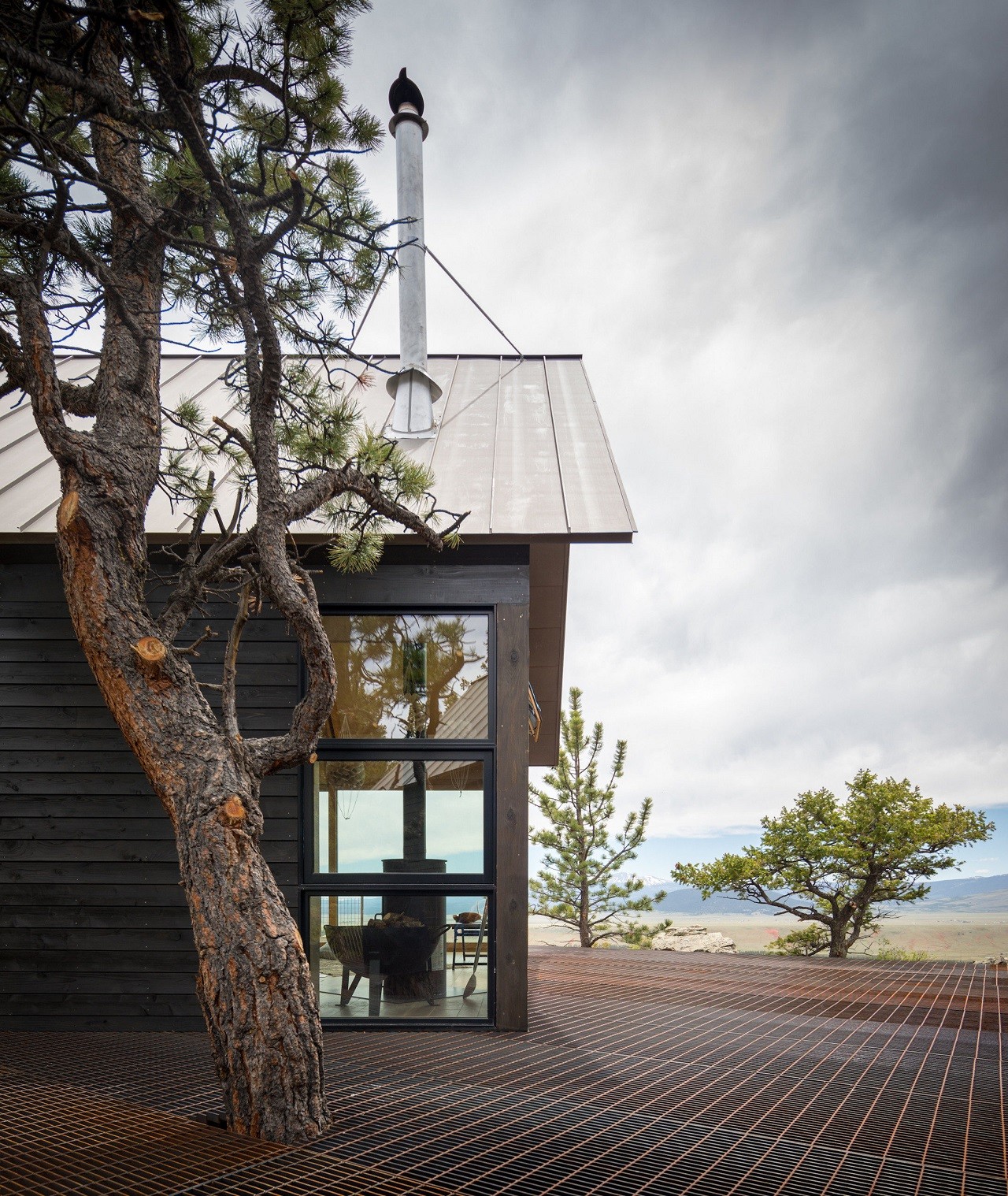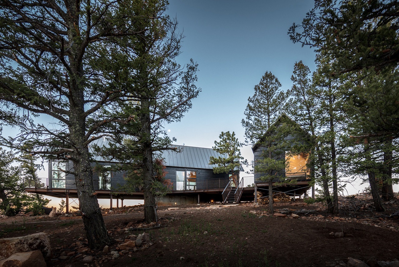 Embodying the character of a traditional cabin within a modern framework, the Big Cabin | Little Cabin is a magnificent retreat, perched 10,000 feet up, on a rocky cliff overlooking Colorado’s Sangre de Cristo mountains.