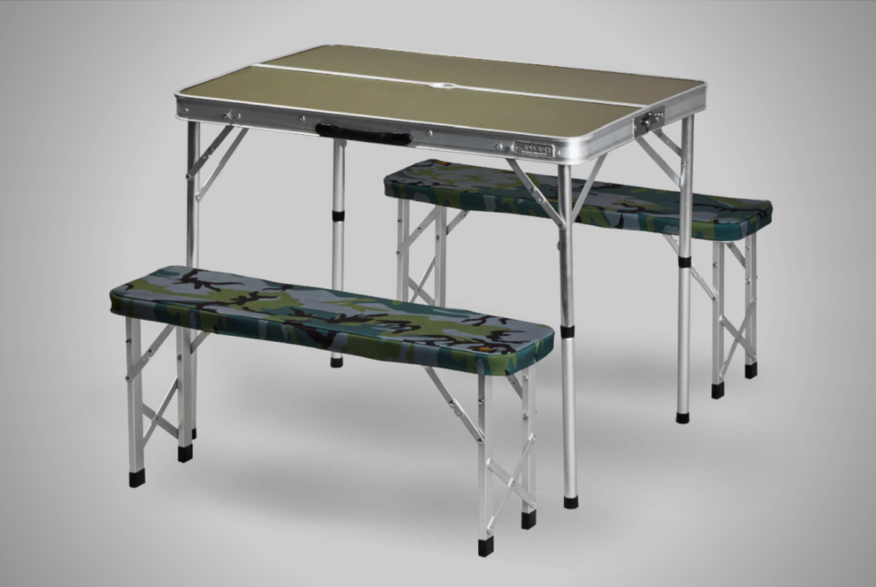 The table is crafted from lightweight aluminum, but don’t be fooled — the benches can actually hold up to 300 pounds each. You can set it up on a camping trip, take it with you on a film set, or install it in your backyard to provide extra seats for unexpected guests at your pool party — it doesn’t matter. You can prop the whole thing in just two minutes.