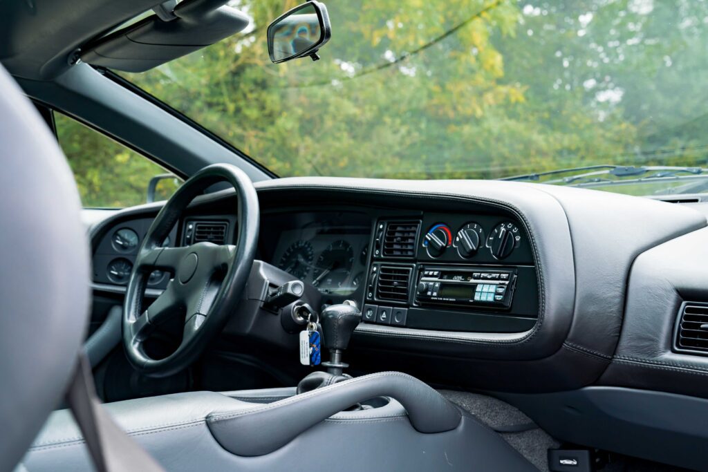 The XJ220 has a “LeMans Blue” finish and is the 29th out of 285 units produced, including the prototypes. Legendary South African Designer Keith Helfet styled the example and it features a deeply scalloped side air intakes, an upswept tail, and flush headlight covers that dropped down into the nose to display the fixed lenses behind. The example was made by JaguarSport in a partnership between Tom Walkinshaw Racing and Jaguar.