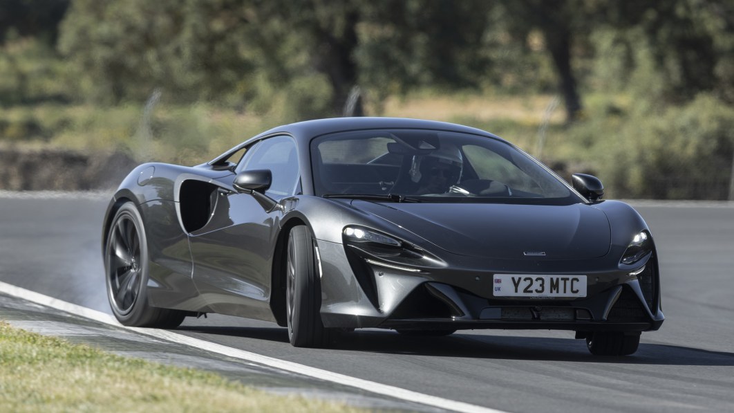 With its short wheelbase, overall compactness and all that power, the Artura actually feels lithe on its tires — which, by the way, feature Pirelli’s first production iteration of its sensor and Bluetooth-based Smart Tire, allowing the car to instantly know exactly which type of 235/35/ZR19 (front) and 295/35/ZR20 (rear) tires are on the car — street, track or snow — how warm the rubber is inside the sidewall as opposed to at the rim, and precisely how much air is contained within. George Orwell said ignorance was strength, so I’m not certain why we’d want to know all of this, and the one time I actually got to use the feature on the track, the McLaren tech who was present overruled the red warning light and deflated the rubber to a pressure he deemed more appropriate. Progress!