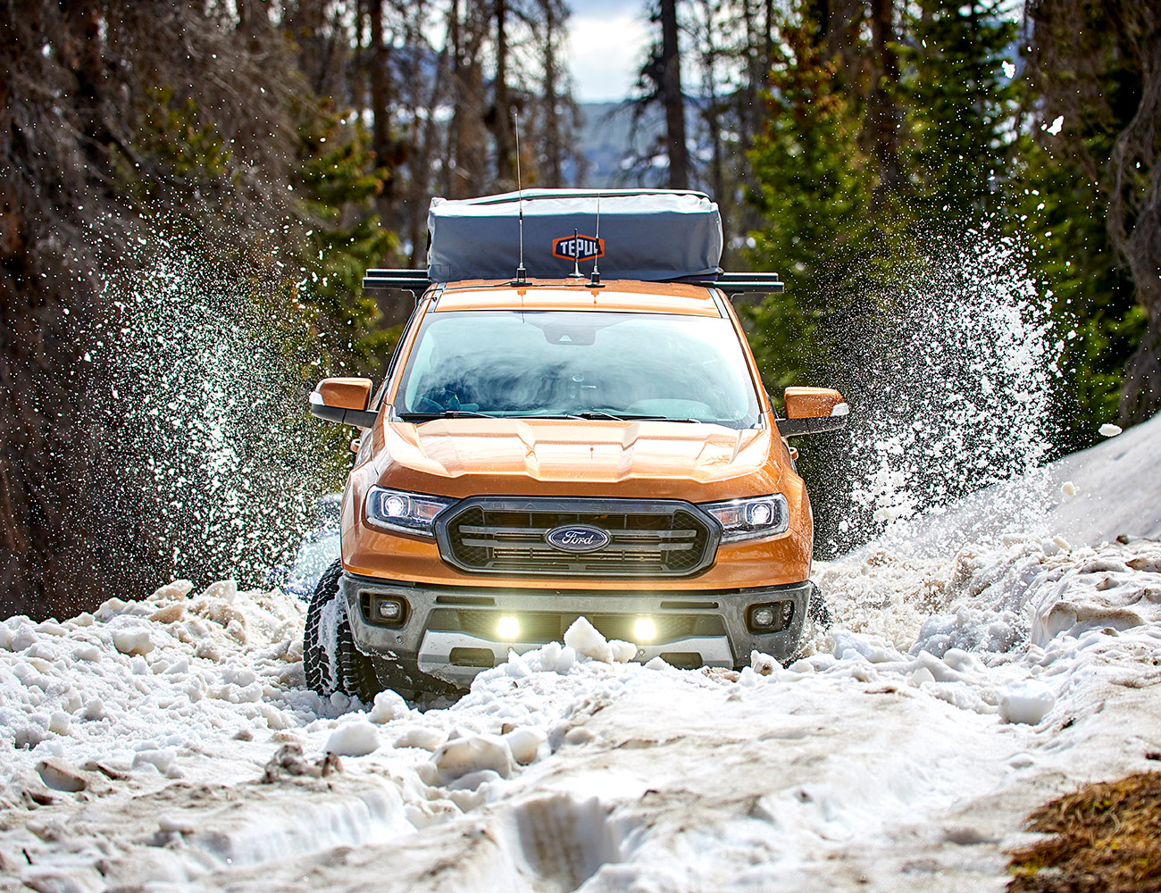 While the first two patches of snow take us only a few attempts to go through, thanks to the high clearance of the Ranger FX4s and the help of the Maxtrax MKII traction mats, the last one proves more difficult. Stuck in the snow, the first Ranger stalls, high-centered and unable to free itself. That’s why we travel with two trucks: The second Ford is able to pull out the unlucky vehicle loose in no time.
