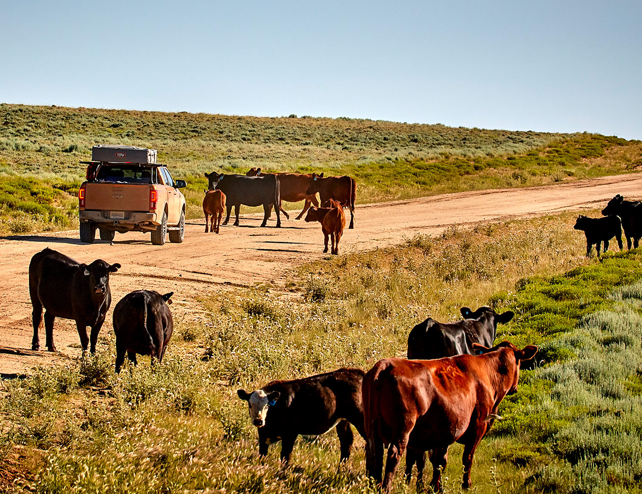 The border between states once again brings a huge geographic change. The high mountains are still in the distance, but we now drive on easy trails in the plains. Using our GPS’ ability to show the position of the other vehicle on their screens, the two trucks follow each other at a safe distance, so the second can avoid being blinded by the thick dust raised by the first crew. The long-range Midland MXT115 MicroMobile radios make chatting easy regardless of the distance, helping prevent collisions with upcoming traffic, cattle on the trails, or to request some photo stops.