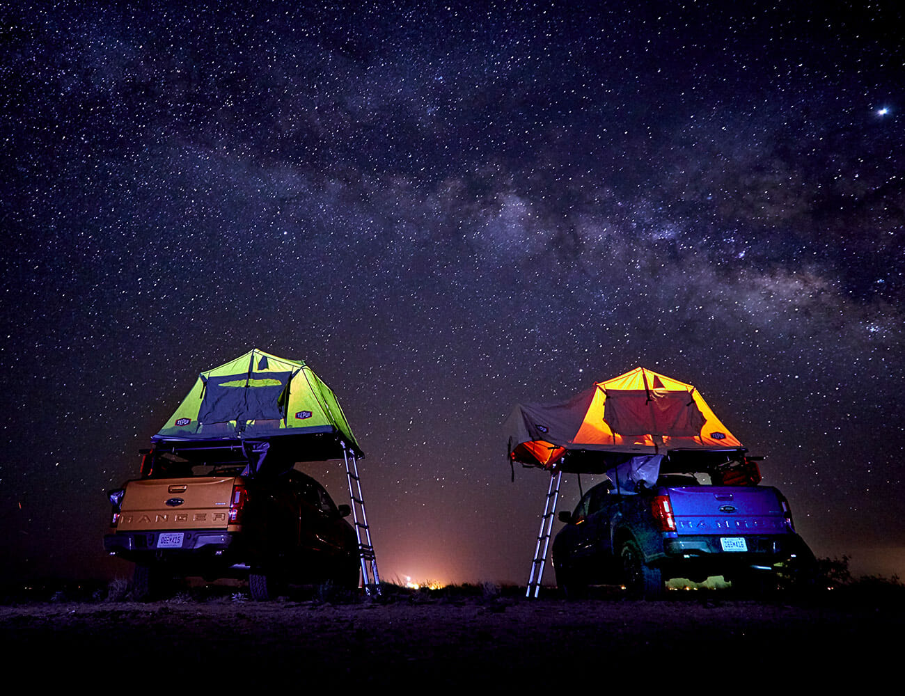 As the sun sets, it’s time to start what will become our daily routine: Finding a free camping spot for the night on BLM land, setting up our Tepui Explorer Kukenam and Autana roof tents and cooking some easy-but-healthy meals. Using two plastic coolers and a gas stove, we whip up recipes with enough proteins, carbs and veggies to call this trip a gastronomic experience. GSI Outdoors cooking kits help us keep everything organized for dinner and breakfast, transforming what would be a duty in the army into a genuine pleasure. Once the dishes are washed (using melted ice from the cooler instead of wasting drinkable water), it’s time for a card game or some night photography of the Milky Way. Hello, vacation mode.