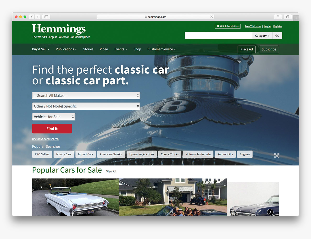 Hemmings is another reliable site that features classic cars, but unlike Bring a Trailer, Hemmings offers both auctions and straightforward sales. Hemmings also operates like a more convential used car site where buyers contact the seller directly, instead of through a forum environment like on BaT.