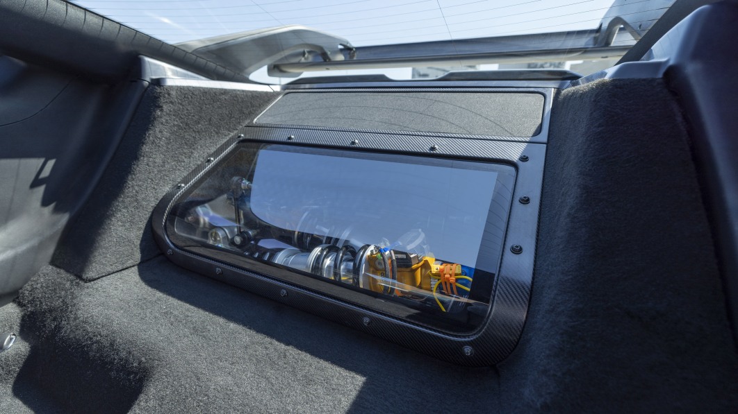 That gem is paired with a seven-speed CIMA manual transmission, and Nilu 3D-printed all exhaust components using Inconel, a nickel-chromium superalloy that can withstand extreme heat and stress. Michelin Pilot Sport Cup 2 R tires wrap 20-inch front and 21-inch rear wheels, and Brembo carbon-ceramic brakes provide stopping power.
