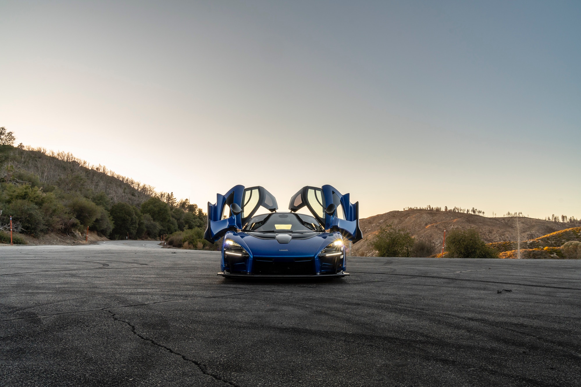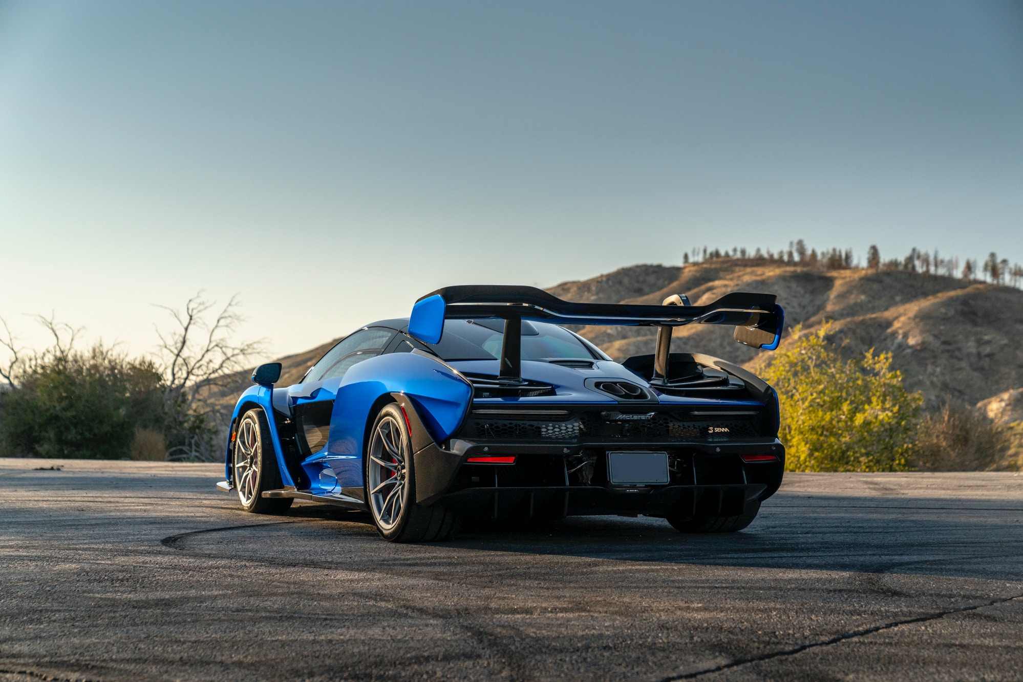 This McLaren Senna has been kept fully original and unmodified. It was given a “Vega Blue Elite” finish with all its exterior visible carbon-fiber given a gloss finish., which is a $19,513 option. The example was also given Gorilla Glass upper and lower door panels worth $5,870. The striking exterior of this Senna is highlighted by a glass rear upper bulkhead as well as the “dark stealth” finish of the exhaust heatshield.