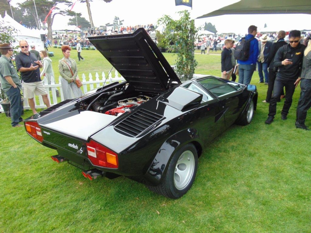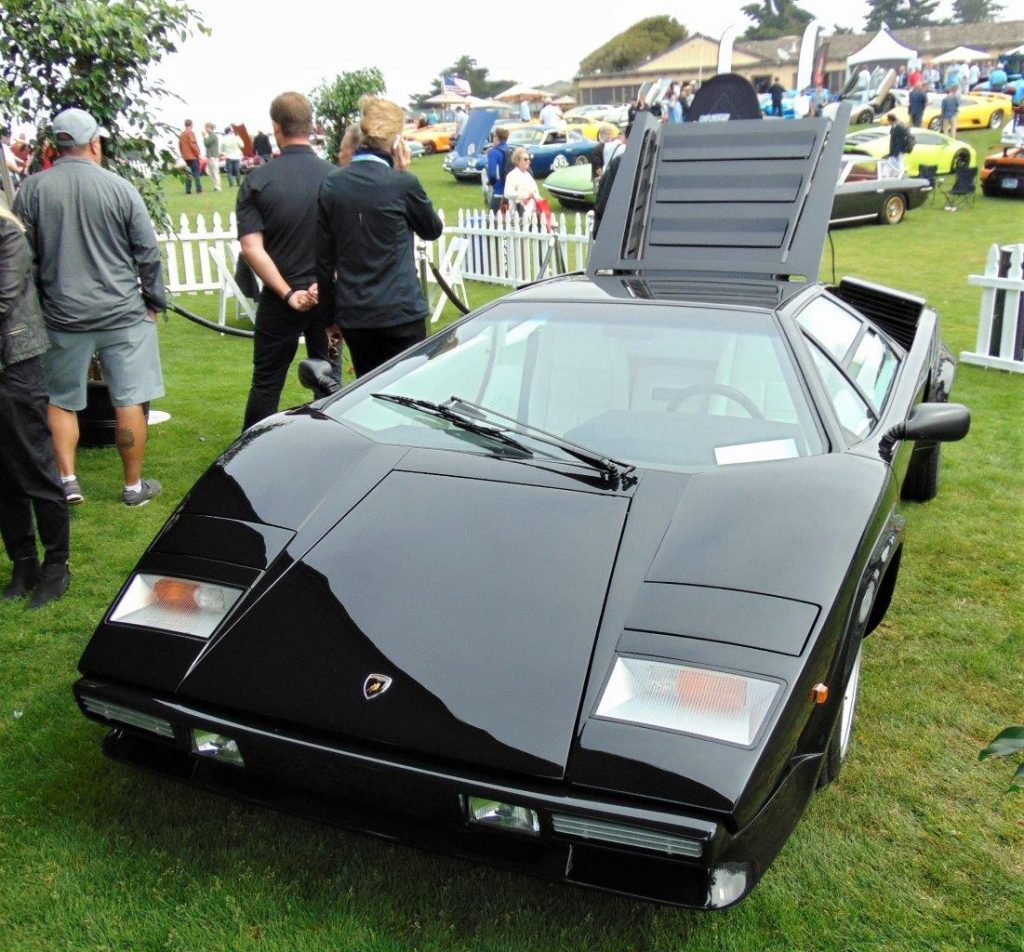 Radiating under the nearby Meguiars tent was a glistening black Lamborghini Countach (1974–1990). The black paint appeared wet and mirrored, totally without blemish.