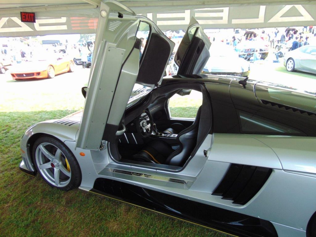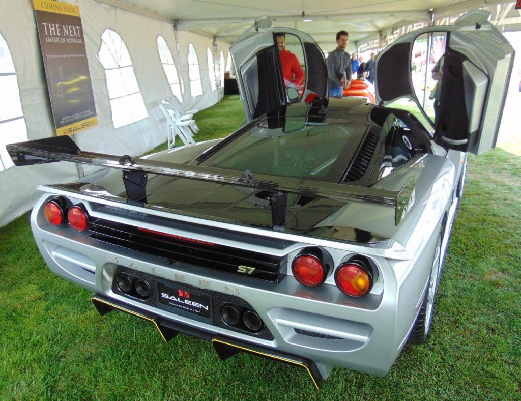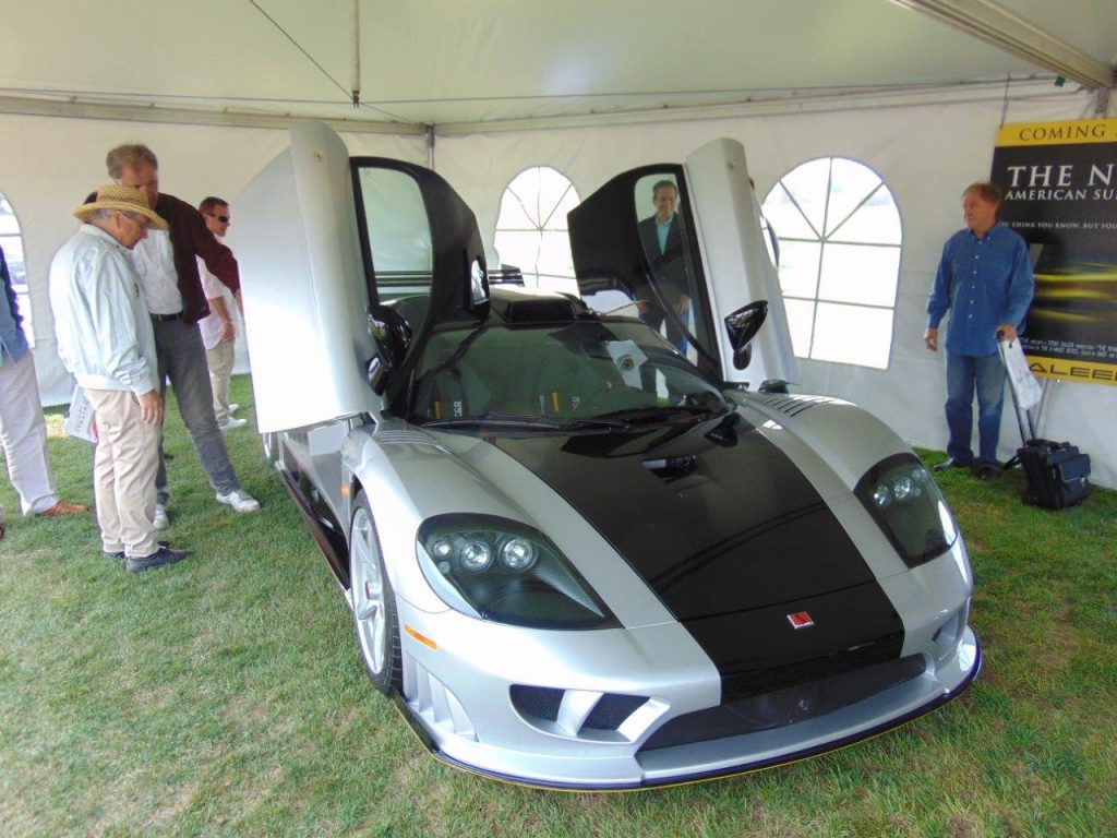 I was hoping that I would find Steve Saleen’s latest version of his famous S7, the new Le Mans (LM) Edition. I located it under the shade of its tent in metallic silver with black trim, looking beautifully wet and glistening as if coated with liquid. Incredibly stylish on street or track, the new car is styled very similarly to the original S7.